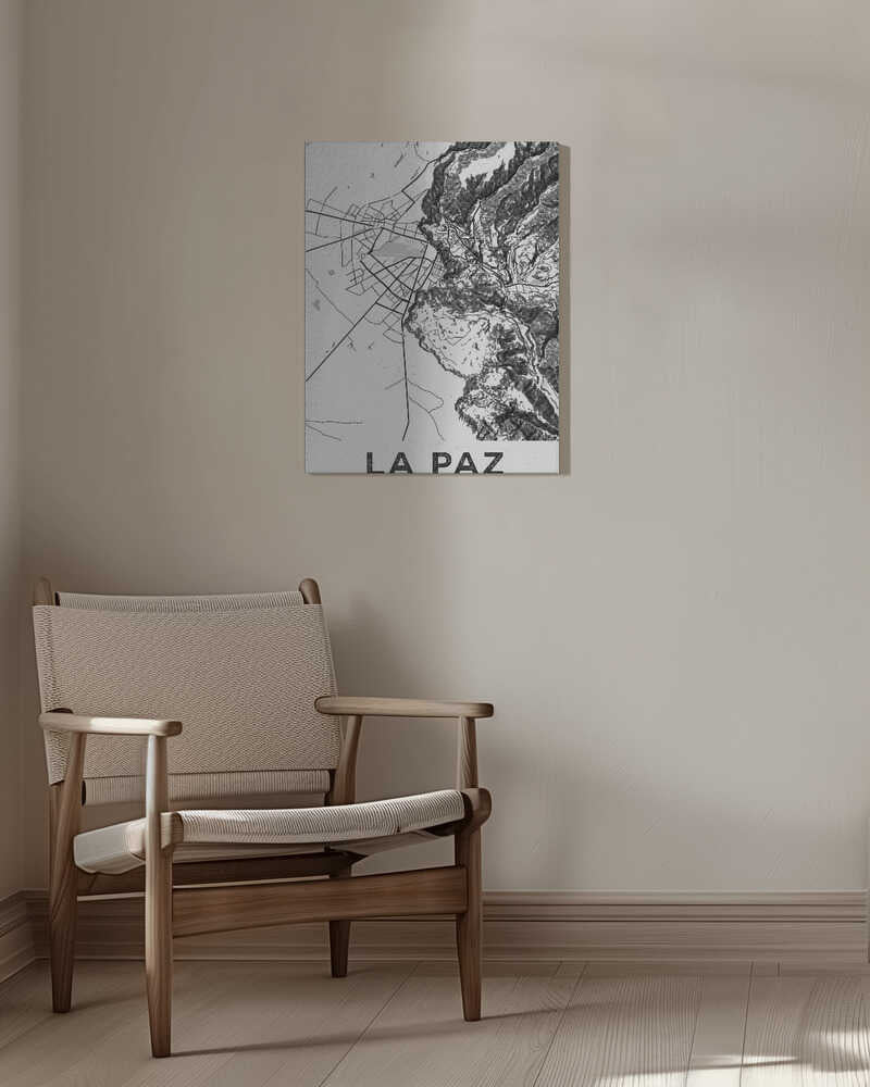 Tablou canvas „La Paz White” creat de StudioSix, imprimat pe pânză de calitate, gata de agățat. Disponibil în mai multe dimensiuni. Perfect pentru orice spațiu.