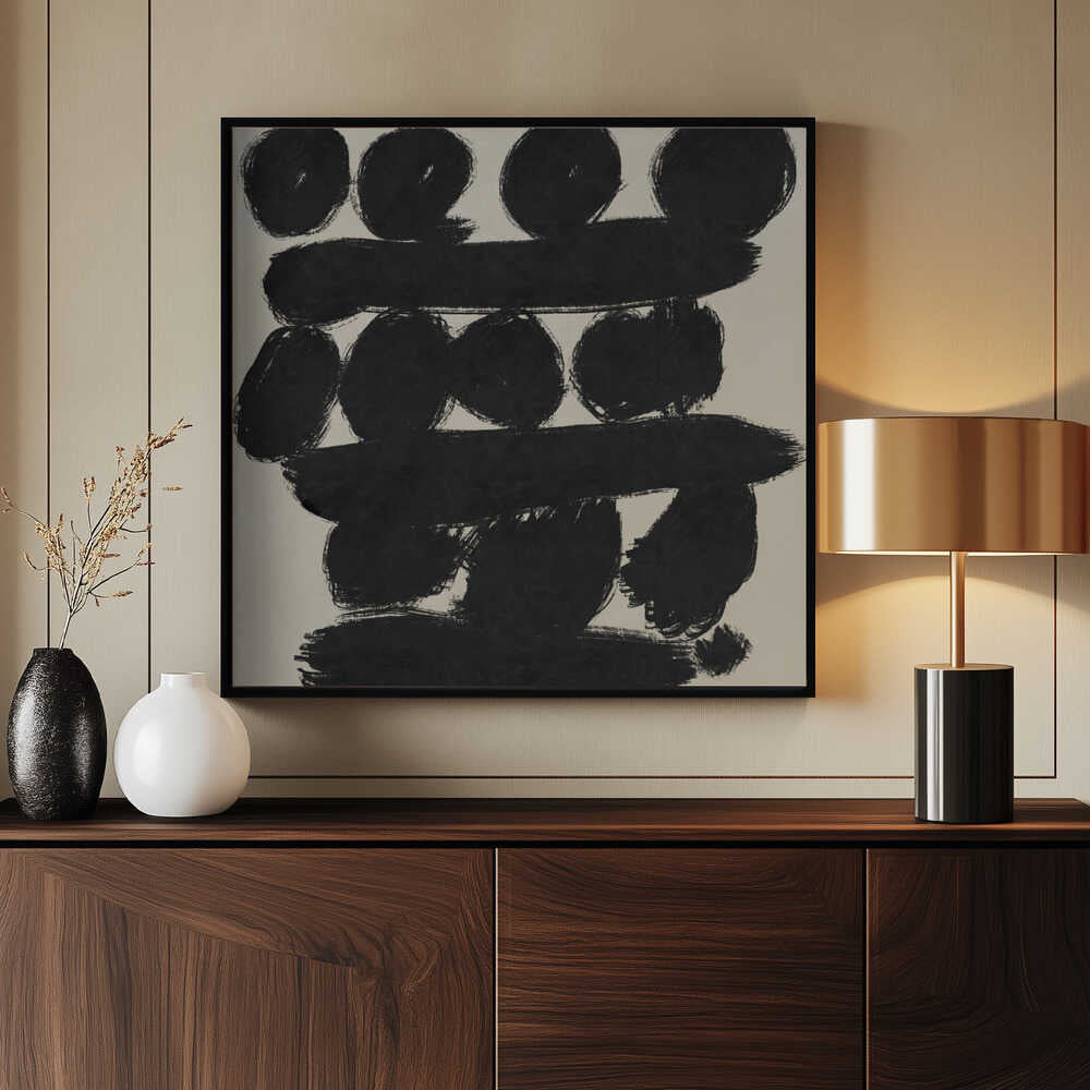Tabloul înramat „Circles abstract 03”, creat de Little Dean, este disponibil în mai multe dimensiuni, cu ramă neagră, albă sau din lemn natur. Se potrivește perfect în orice încăpere.