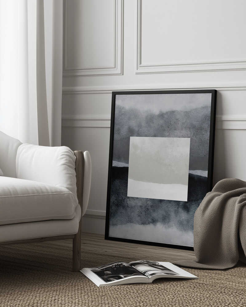 Tabloul înramat „Minimalism 52Y”, creat de Mareike Böhmer, este disponibil în mai multe dimensiuni, cu ramă neagră, albă sau din lemn natur. Se potrivește perfect în orice încăpere.