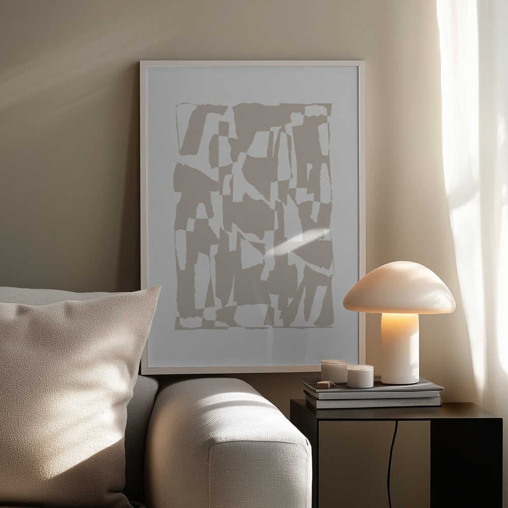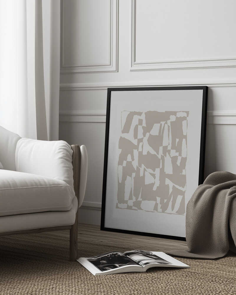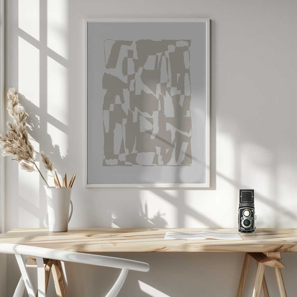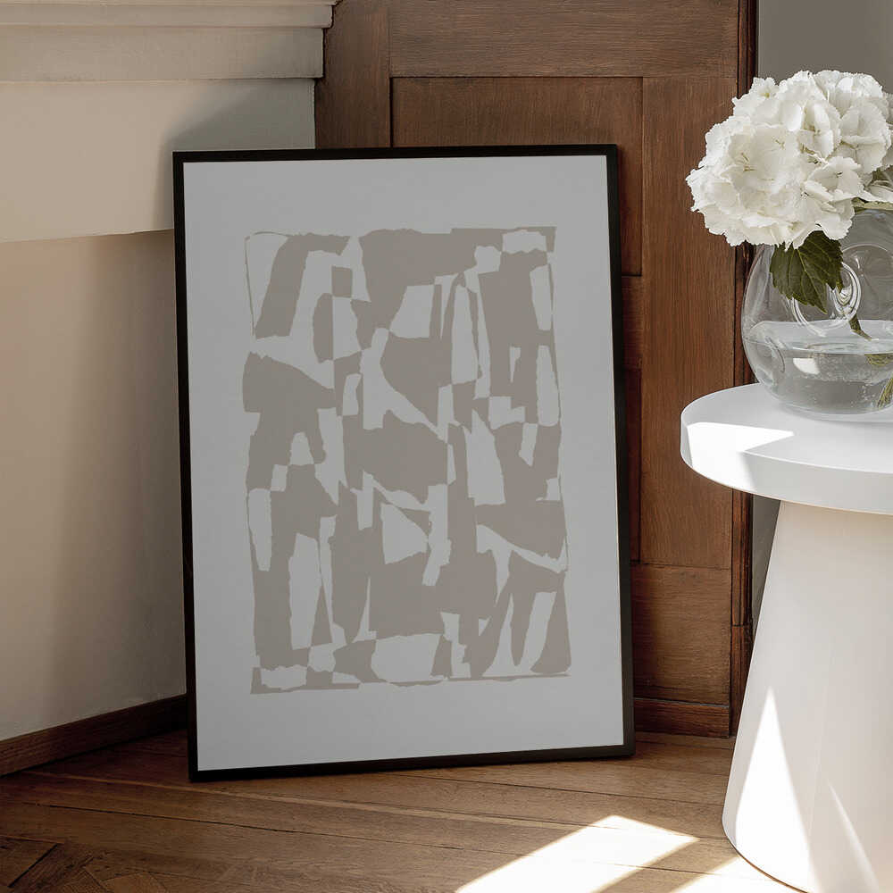 Tabloul înramat „Pieces 25Z”, creat de Mareike Böhmer, este disponibil în mai multe dimensiuni, cu ramă neagră, albă sau din lemn natur. Se potrivește perfect în orice încăpere.