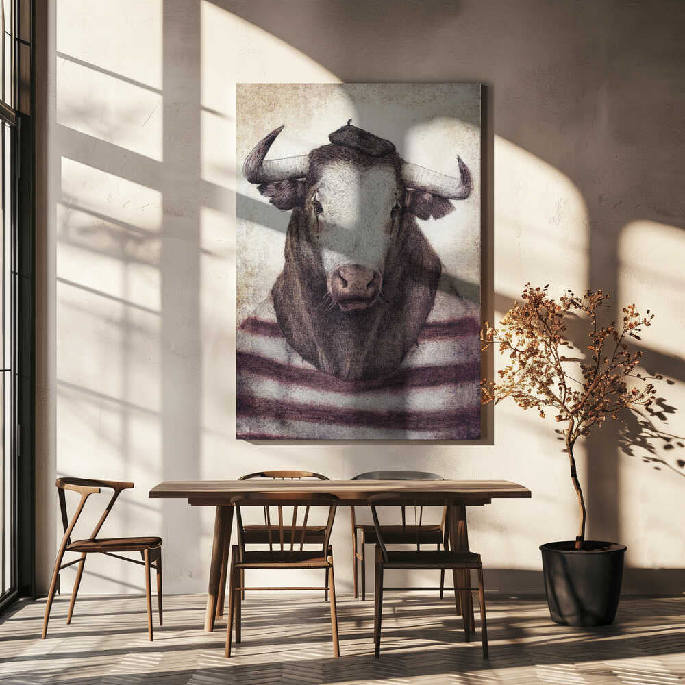 Tablou canvas „Bovine Chic Style” creat de Mike Koubou, imprimat pe pânză de calitate, gata de agățat. Disponibil în mai multe dimensiuni. Perfect pentru orice spațiu.