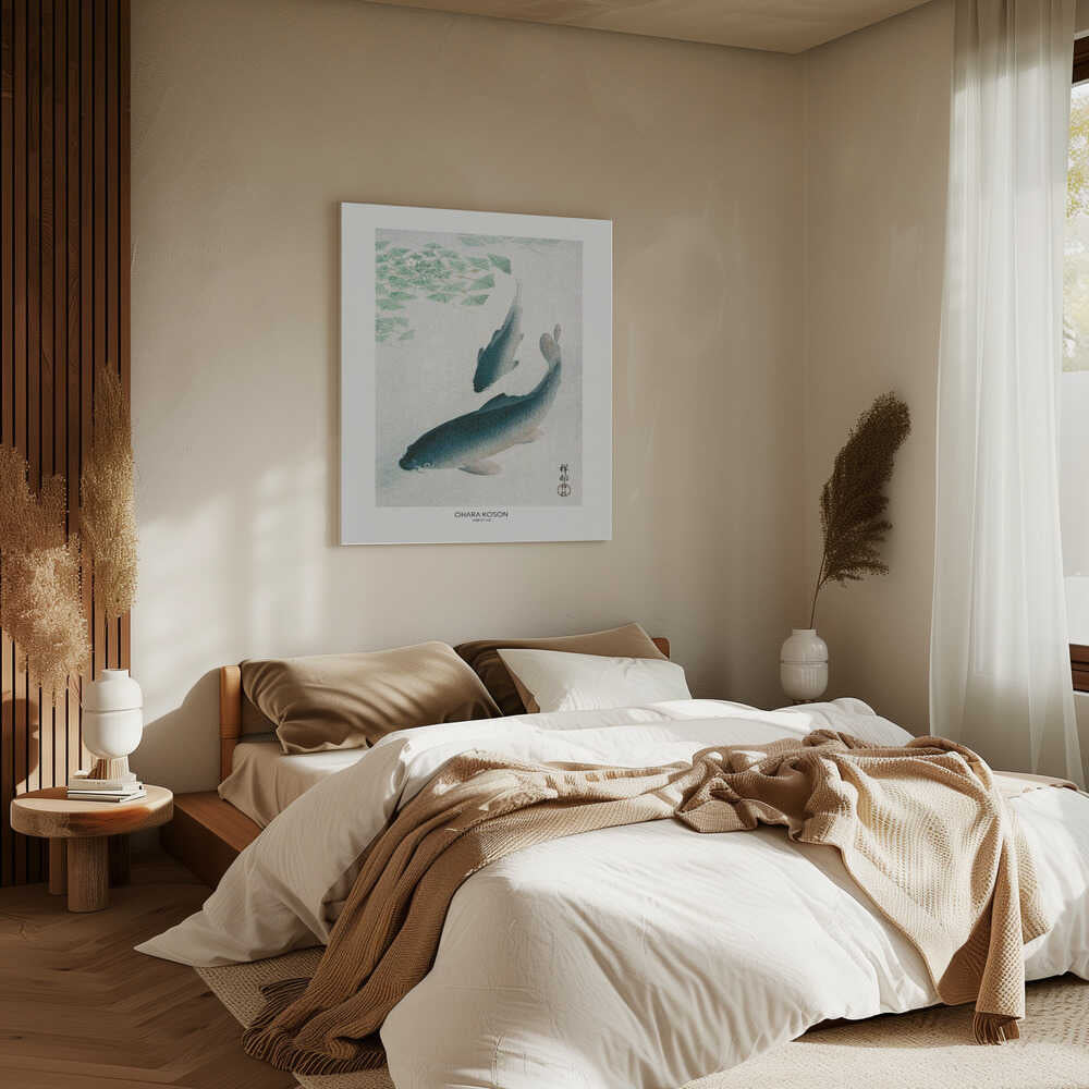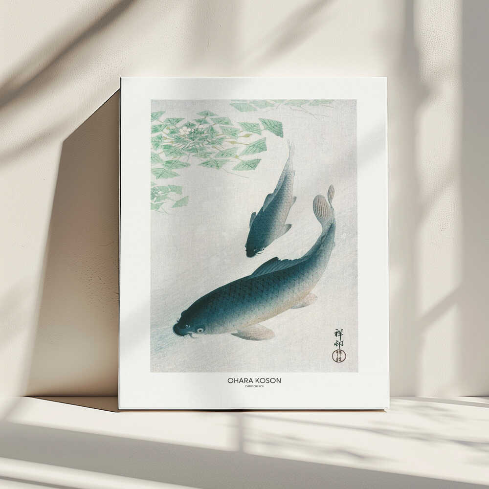 Tablou canvas „Carp Or Koi” creat de Ohara Koson, imprimat pe pânză de calitate, gata de agățat. Disponibil în mai multe dimensiuni. Perfect pentru orice spațiu.