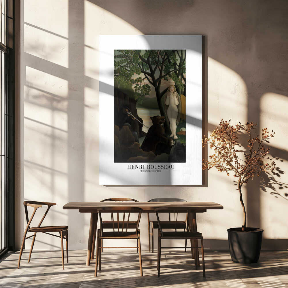 Tablou canvas „Mauvaise Surprise” creat de Henri Rousseau, imprimat pe pânză de calitate, gata de agățat. Disponibil în mai multe dimensiuni. Perfect pentru orice spațiu.