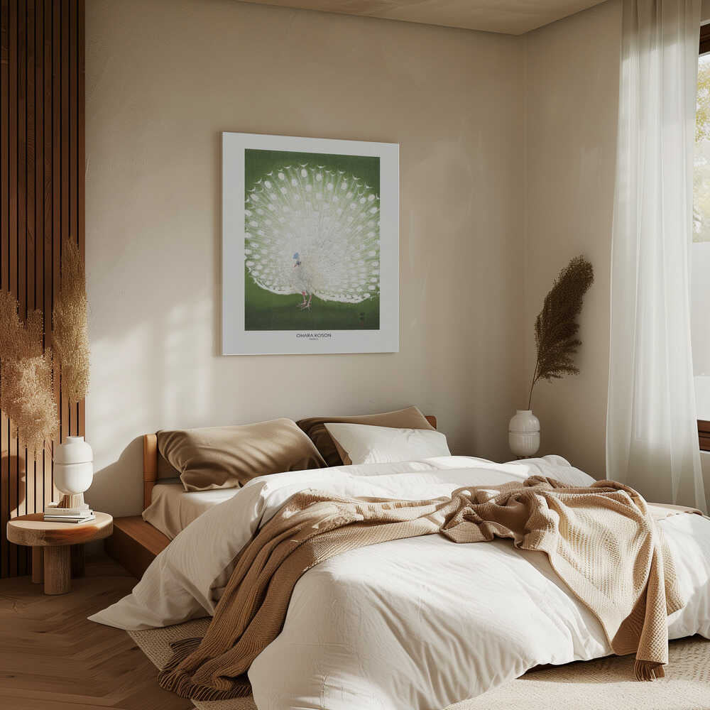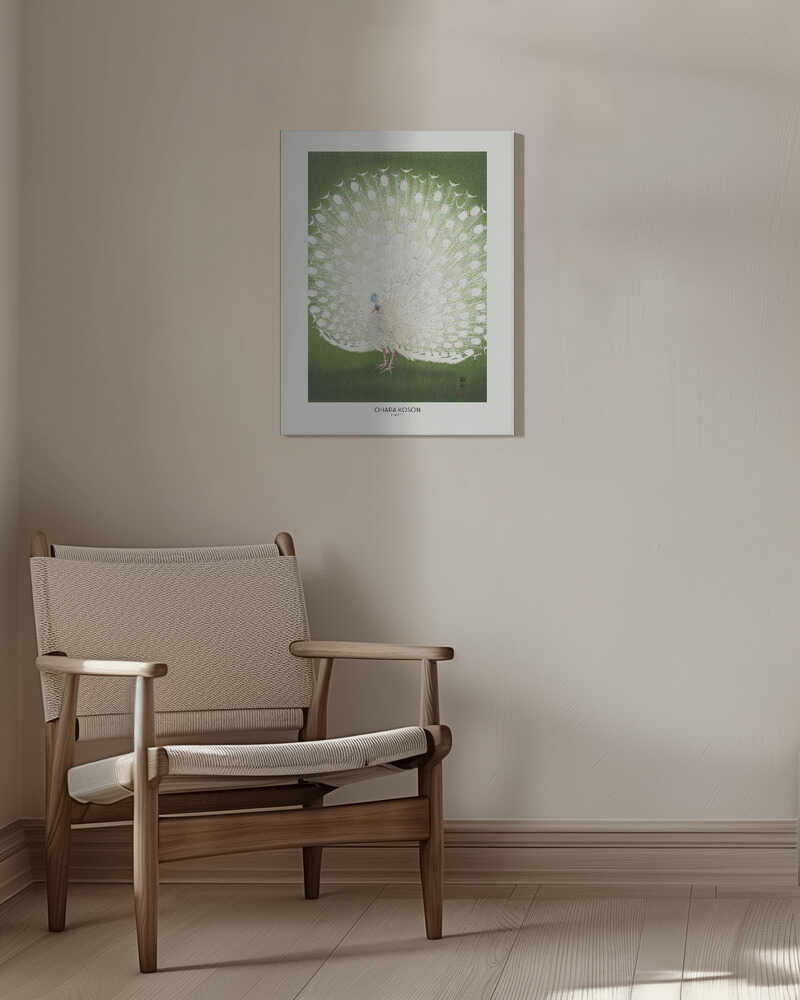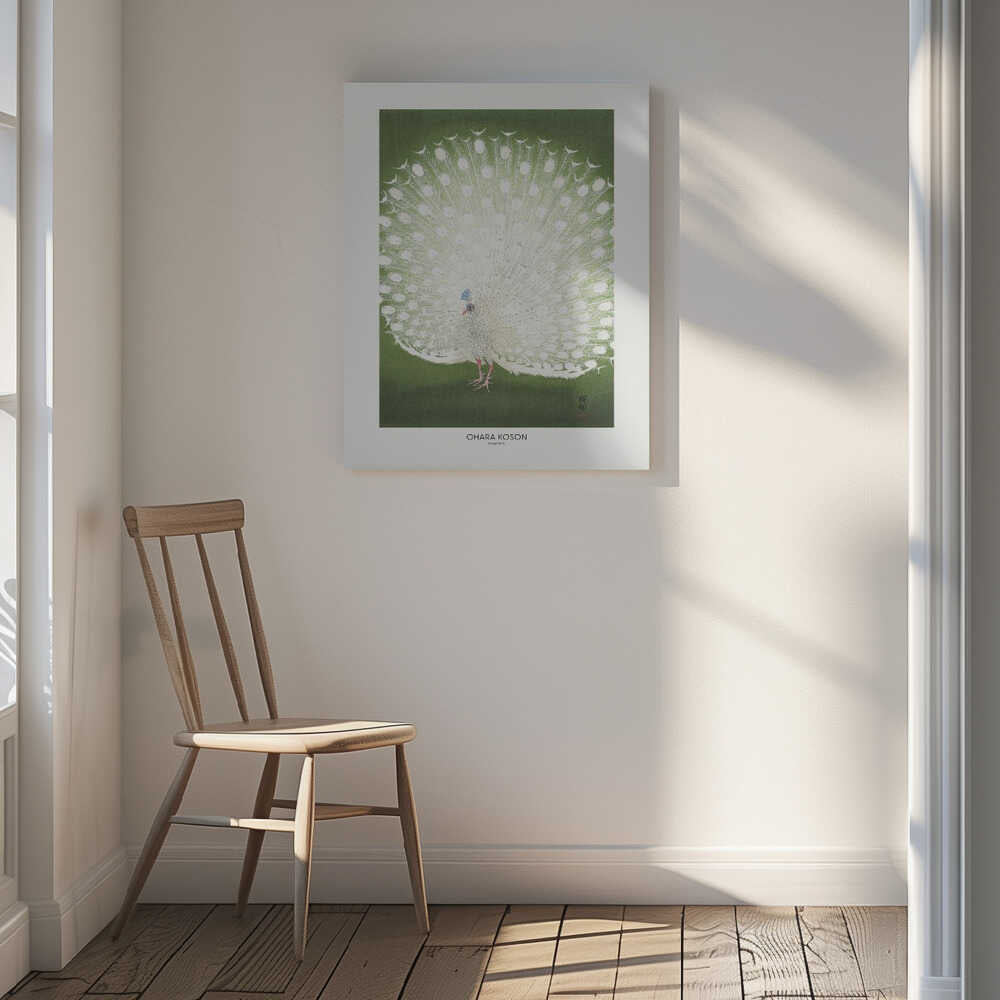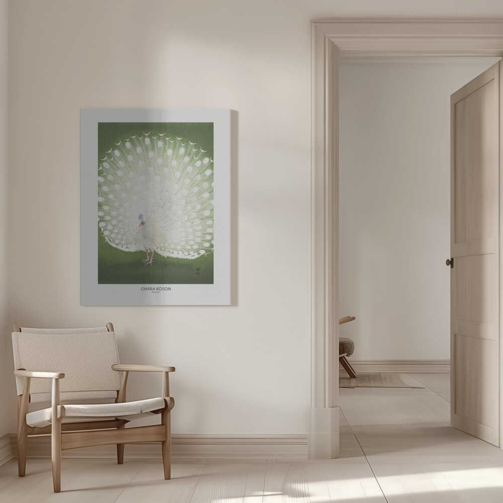 Tablou canvas „Peacock - Cropped” creat de Ohara Koson, imprimat pe pânză de calitate, gata de agățat. Disponibil în mai multe dimensiuni. Perfect pentru orice spațiu.
