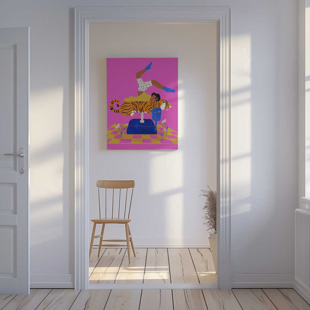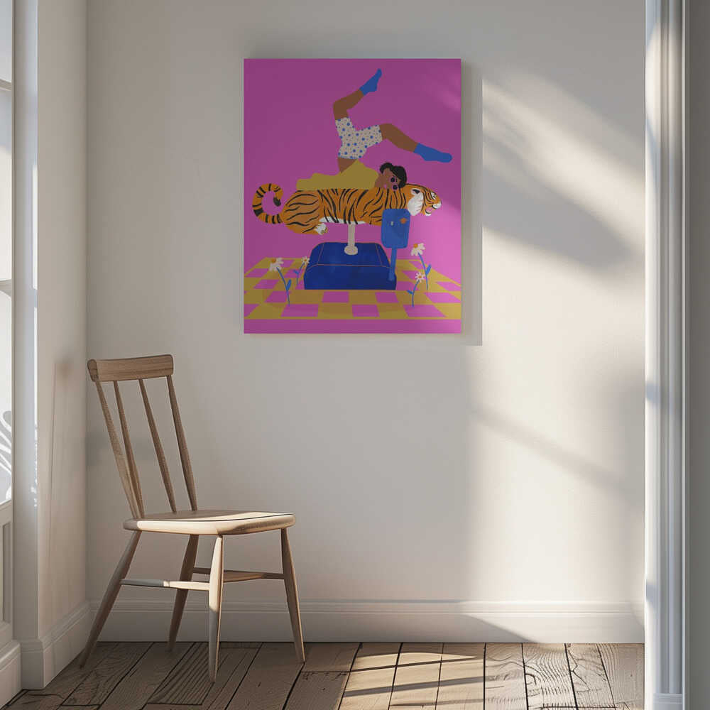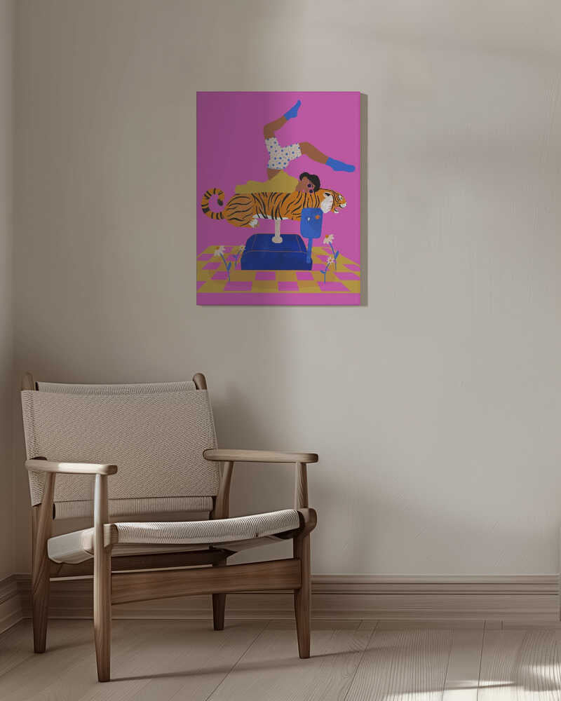 Tablou canvas „Put a tiger in your heart” creat de Jota de jai, imprimat pe pânză de calitate, gata de agățat. Disponibil în mai multe dimensiuni. Perfect pentru orice spațiu.