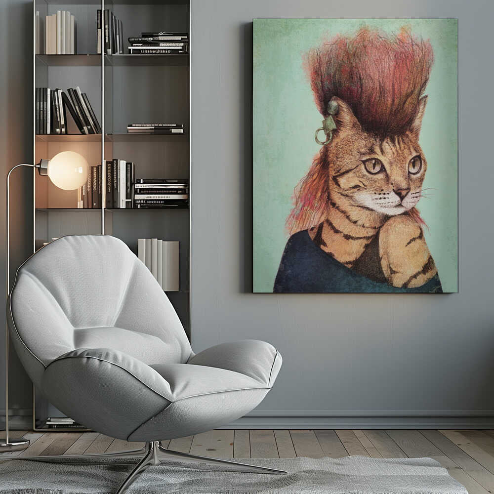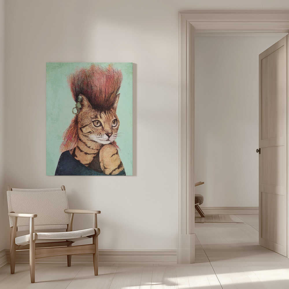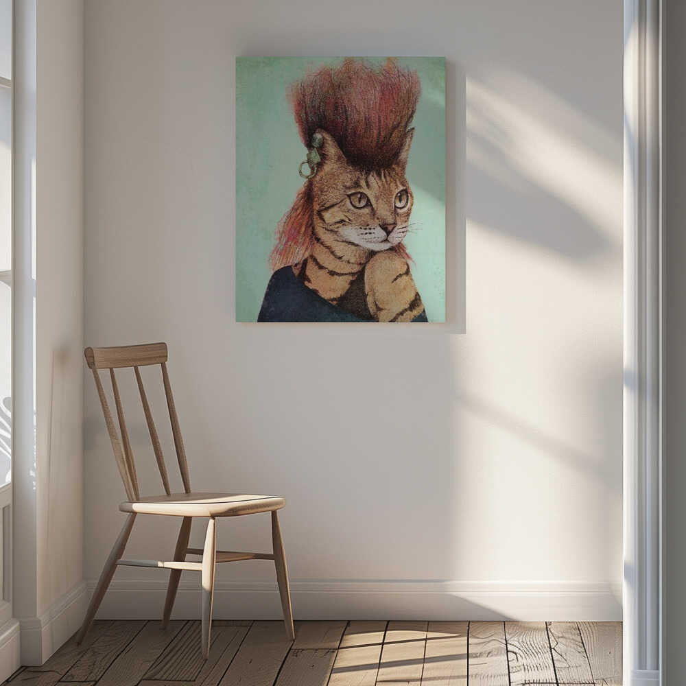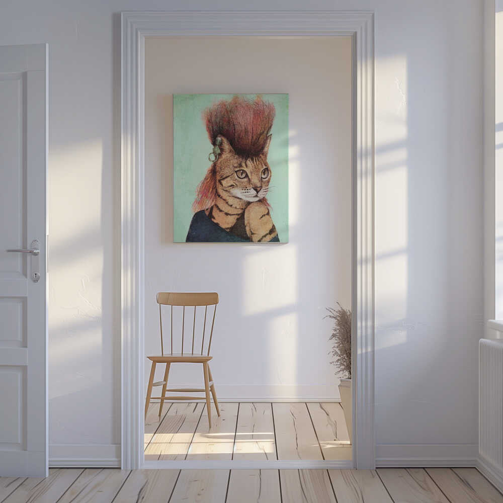 Tablou canvas „Stylish Tabby Cat” creat de Mike Koubou, imprimat pe pânză de calitate, gata de agățat. Disponibil în mai multe dimensiuni. Perfect pentru orice spațiu.