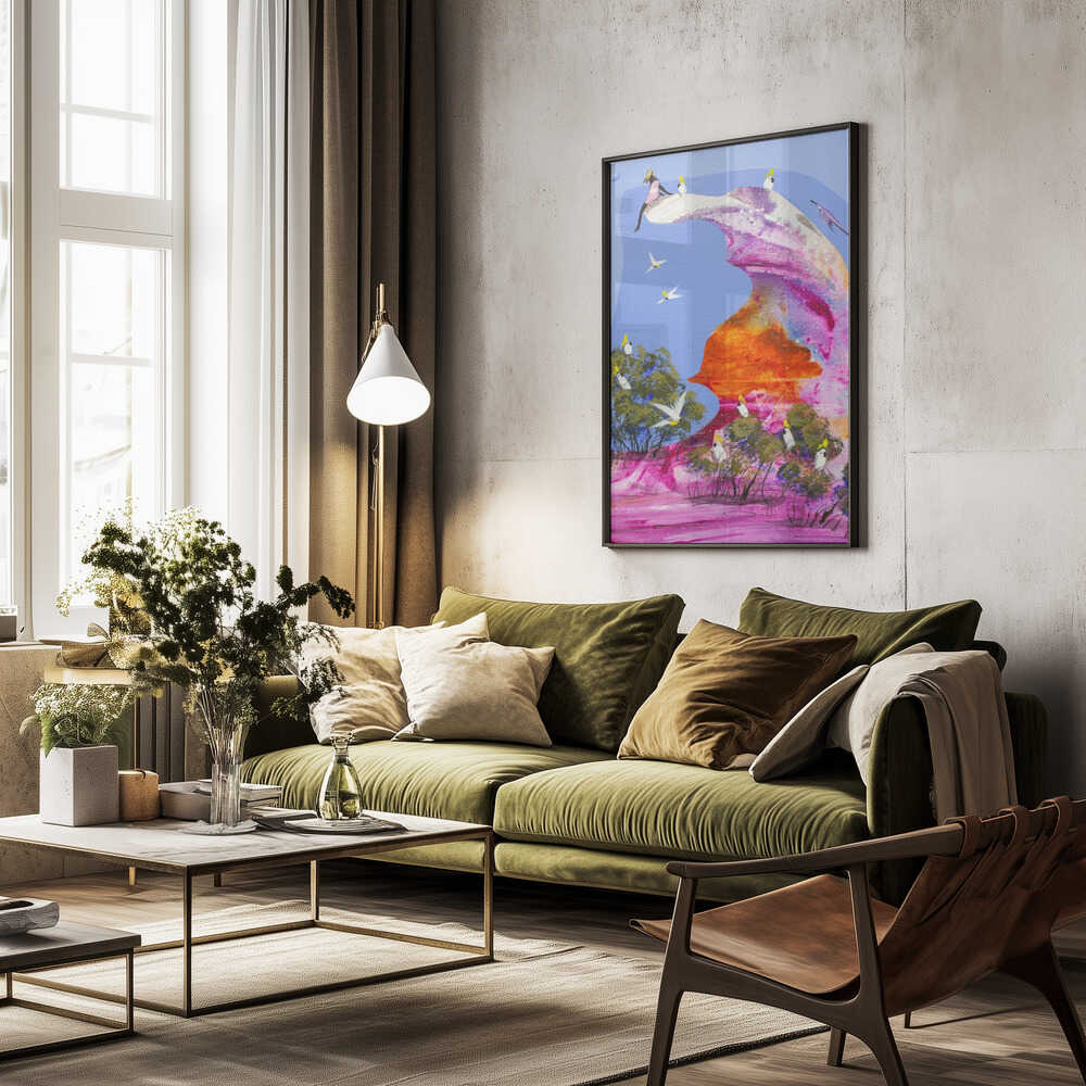 Tabloul înramat „Away from it all”, creat de Adam Bogusz, este disponibil în mai multe dimensiuni, cu ramă neagră, albă sau din lemn natur. Se potrivește perfect în orice încăpere.