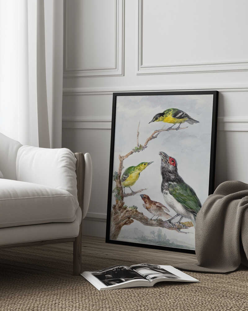 Tabloul înramat „Four Different Birds On a Branch”, creat de Aert Schouman, este disponibil în mai multe dimensiuni, cu ramă neagră, albă sau din lemn natur. Se potrivește perfect în orice încăpere.