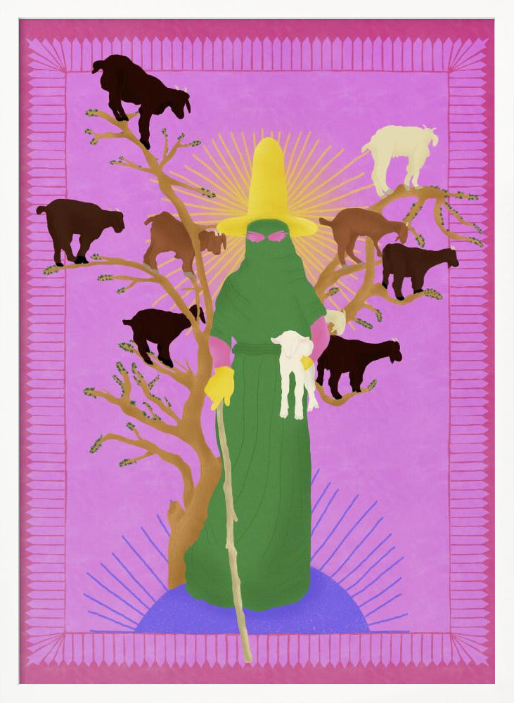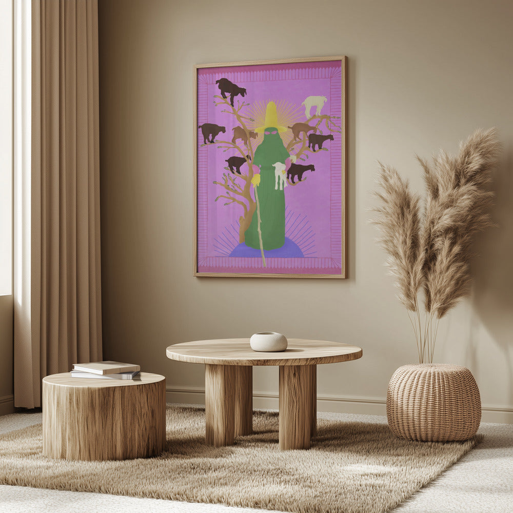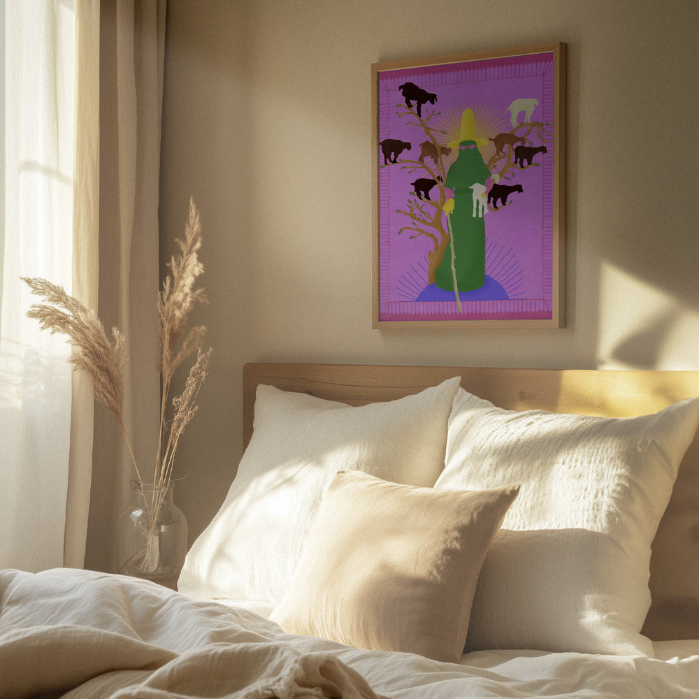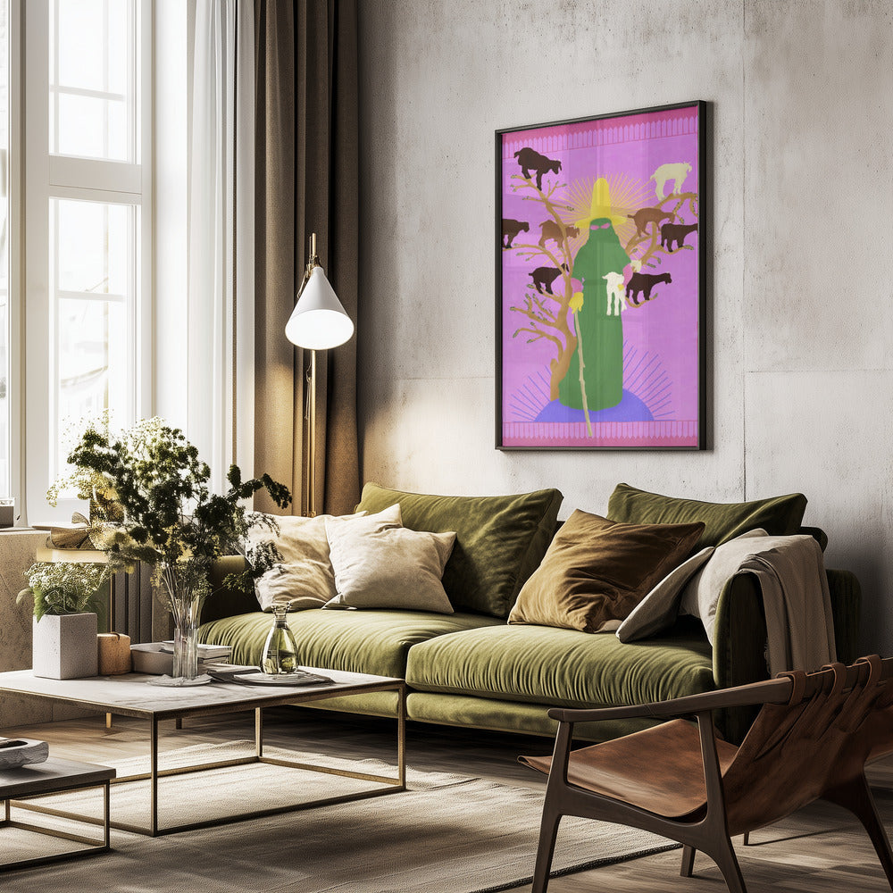 Tabloul înramat „Holy Woman Herder”, creat de Jota de jai, este disponibil în mai multe dimensiuni, cu ramă neagră, albă sau din lemn natur. Se potrivește perfect în orice încăpere.