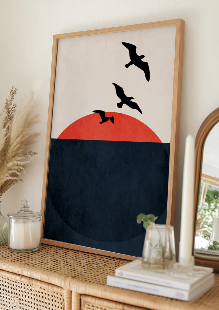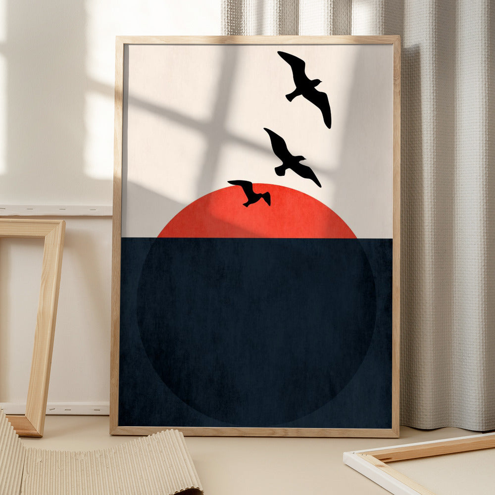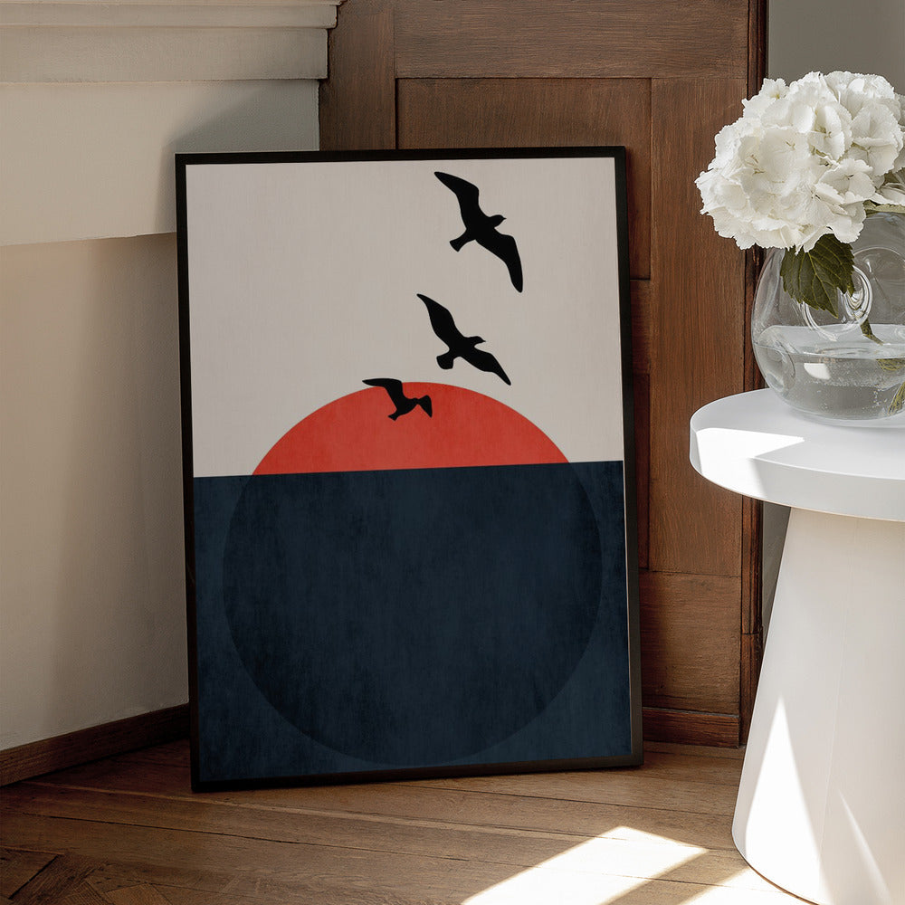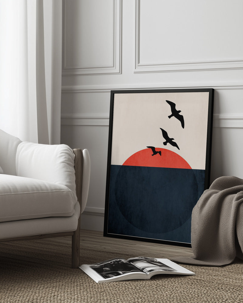 Tabloul înramat „Sunset Breeze”, creat de Kubistika, este disponibil în mai multe dimensiuni, cu ramă neagră, albă sau din lemn natur. Se potrivește perfect în orice încăpere.