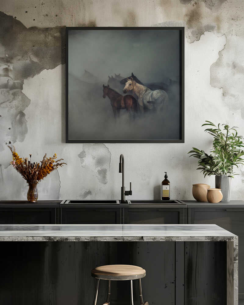 Tabloul înramat „The lost horses”, creat de Hüseyin Taşkın, este disponibil în mai multe dimensiuni, cu ramă neagră, albă sau din lemn natur. Se potrivește perfect în orice încăpere.