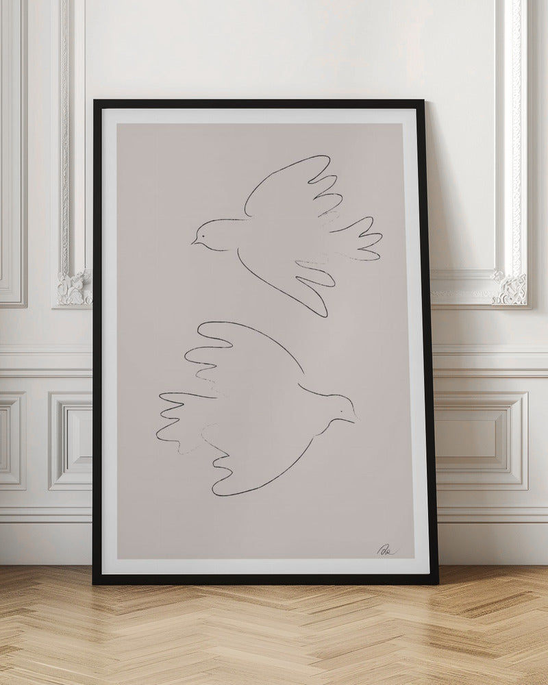 Tabloul înramat „Two Doves”, creat de Pictufy Studio II, este disponibil în mai multe dimensiuni, cu ramă neagră, albă sau din lemn natur. Se potrivește perfect în orice încăpere.