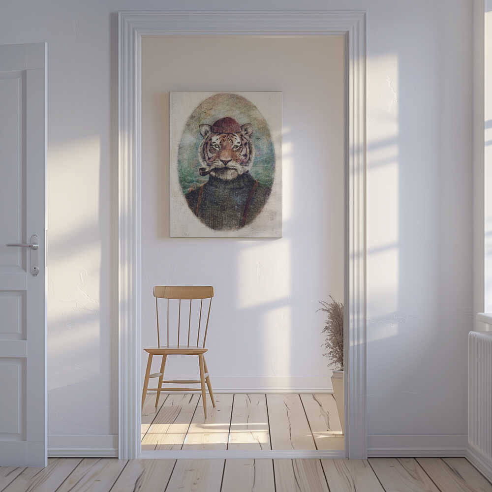 Tablou canvas „Gentleman Tiger” creat de Mike Koubou, imprimat pe pânză de calitate, gata de agățat. Disponibil în mai multe dimensiuni. Perfect pentru orice spațiu.