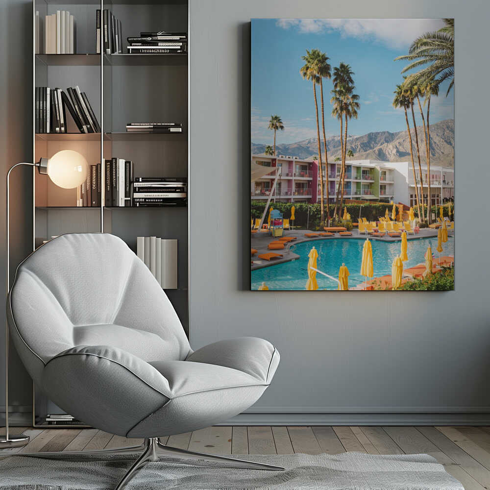Tablou canvas „Palm Springs Saguaro” creat de Bethany Young, imprimat pe pânză de calitate, gata de agățat. Disponibil în mai multe dimensiuni. Perfect pentru orice spațiu.