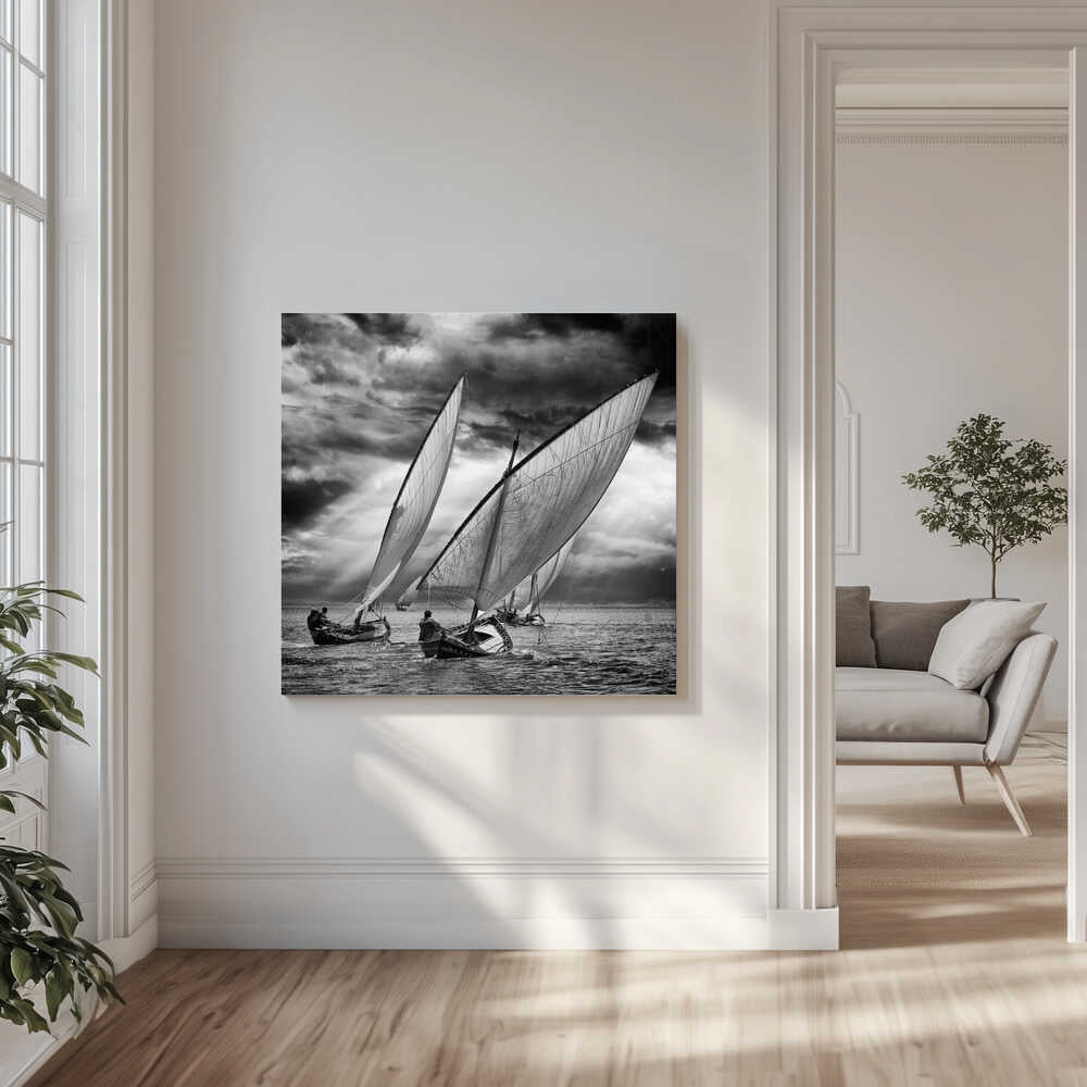 Tablou canvas „Sailboats and Light” creat de Angel Villalba, imprimat pe pânză de calitate, gata de agățat. Disponibil în mai multe dimensiuni. Perfect pentru orice spațiu.