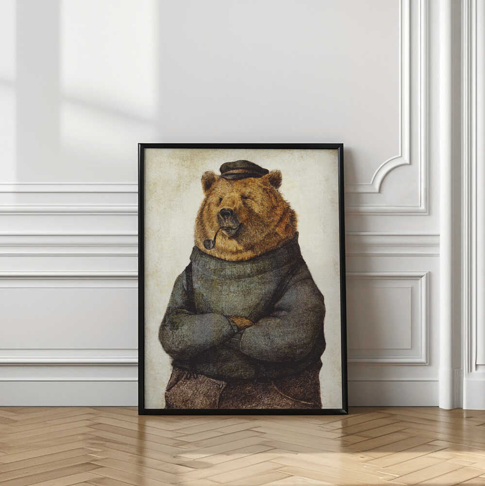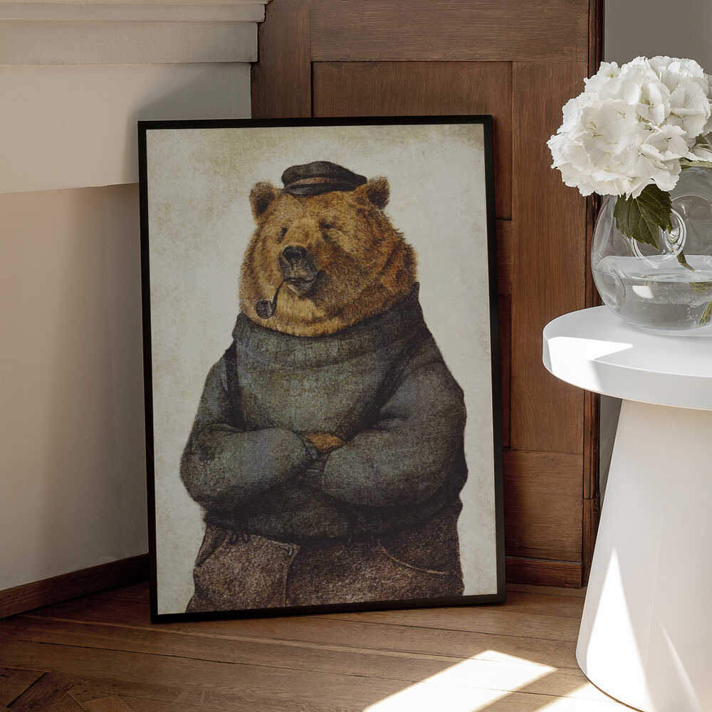 Tabloul înramat „Bear Dressed In A Sweater And Cap”, creat de Mike Koubou, este disponibil în mai multe dimensiuni, cu ramă neagră, albă sau din lemn natur. Se potrivește perfect în orice încăpere.