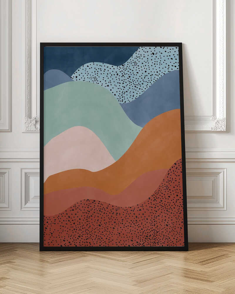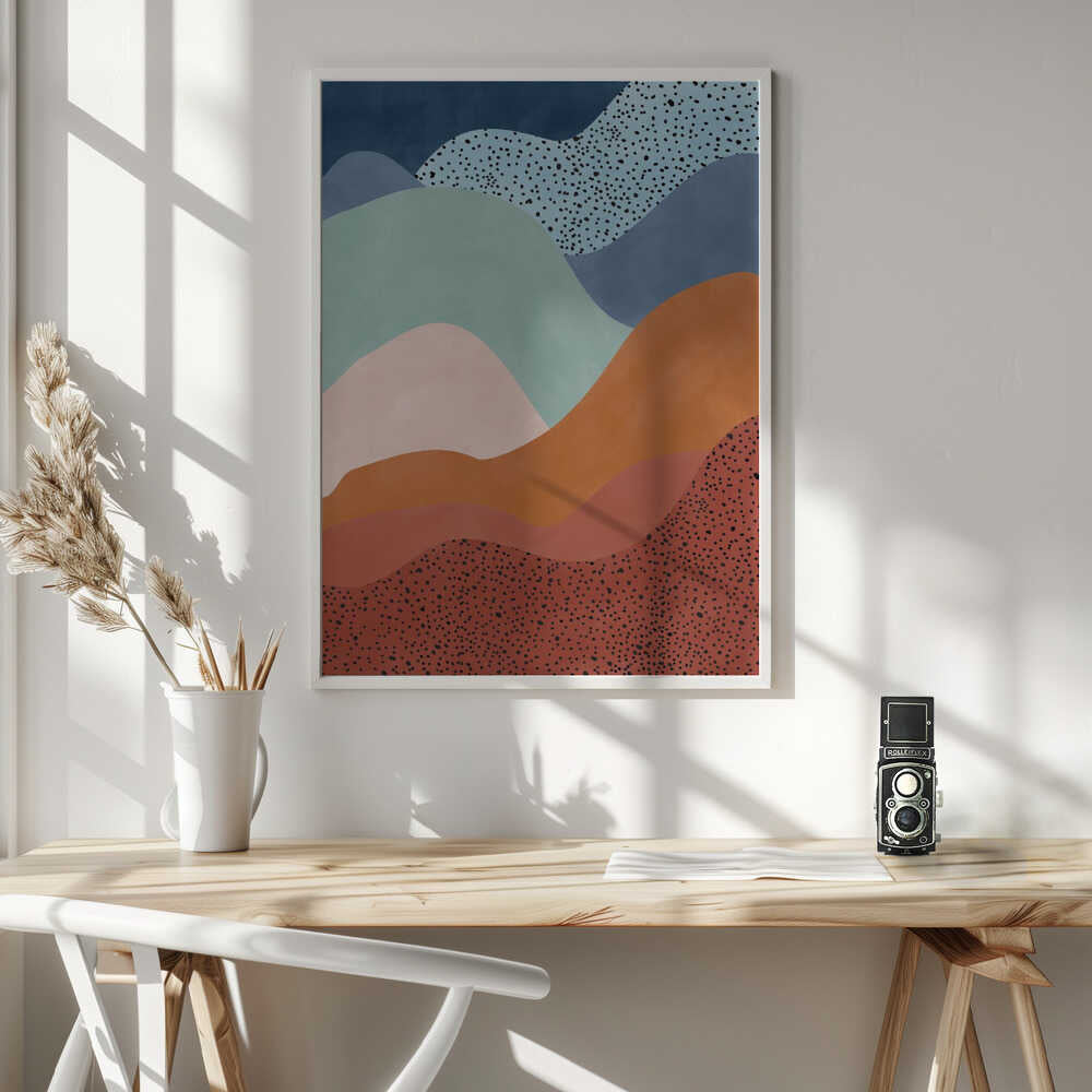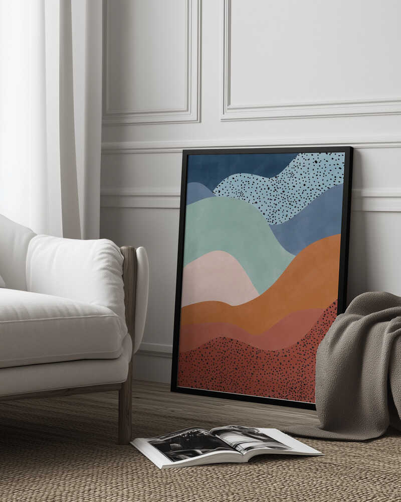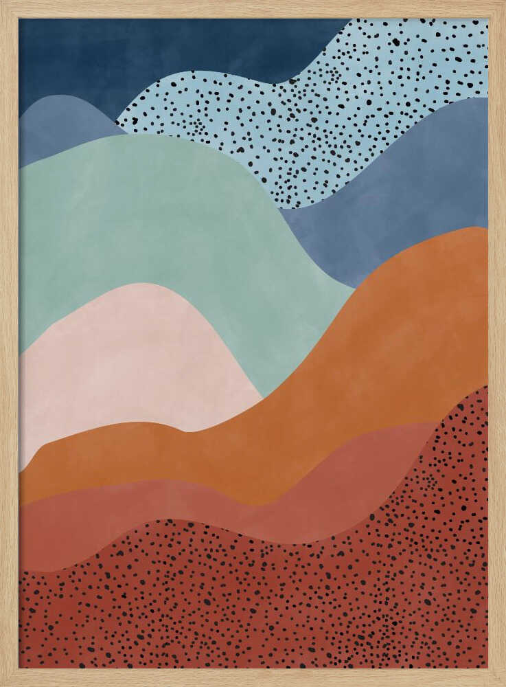Tabloul înramat „Colorful Wave Scape”, creat de Elena Ristova, este disponibil în mai multe dimensiuni, cu ramă neagră, albă sau din lemn natur. Se potrivește perfect în orice încăpere.