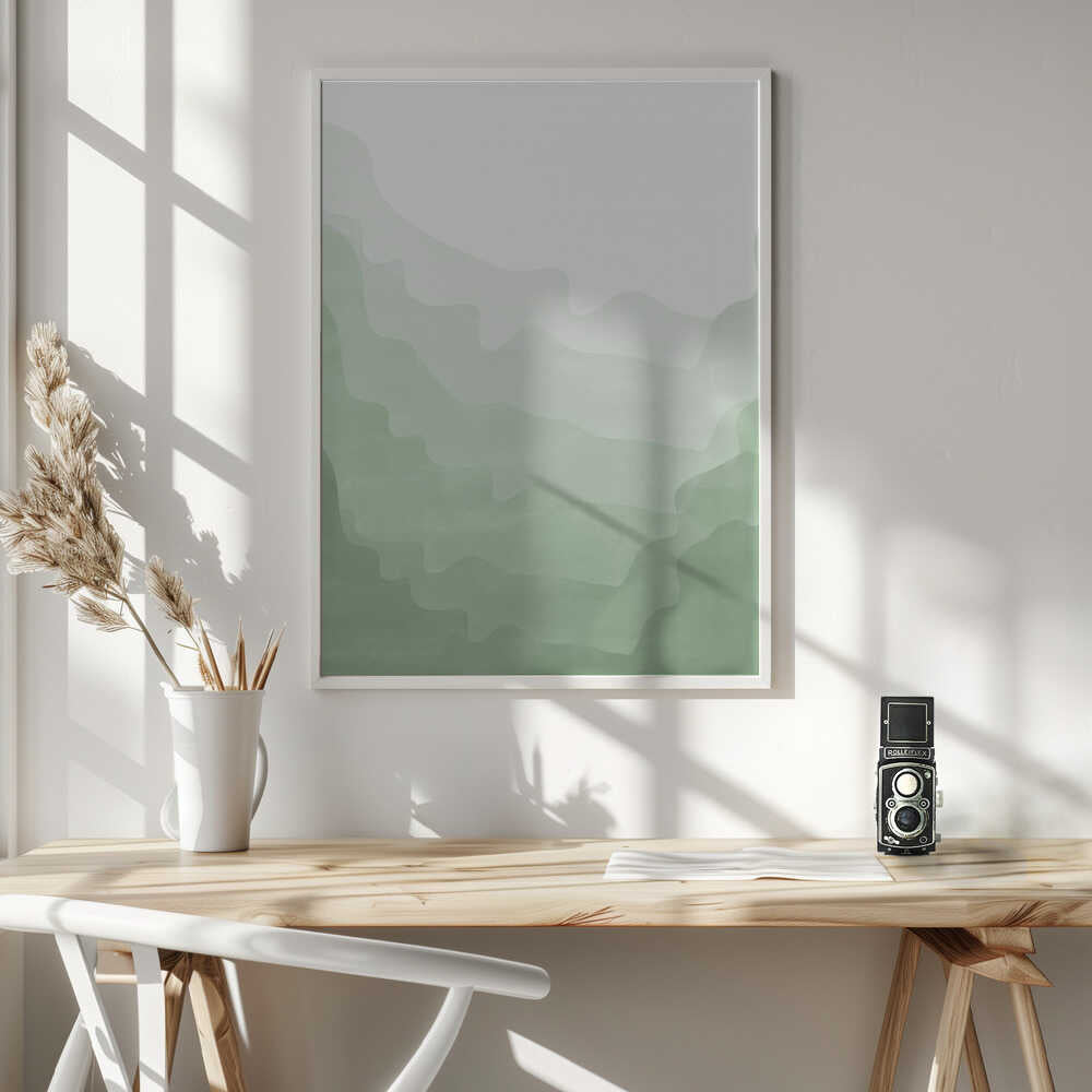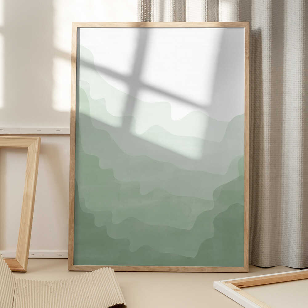 Tabloul înramat „Emerald Wave Scape”, creat de Elena Ristova, este disponibil în mai multe dimensiuni, cu ramă neagră, albă sau din lemn natur. Se potrivește perfect în orice încăpere.