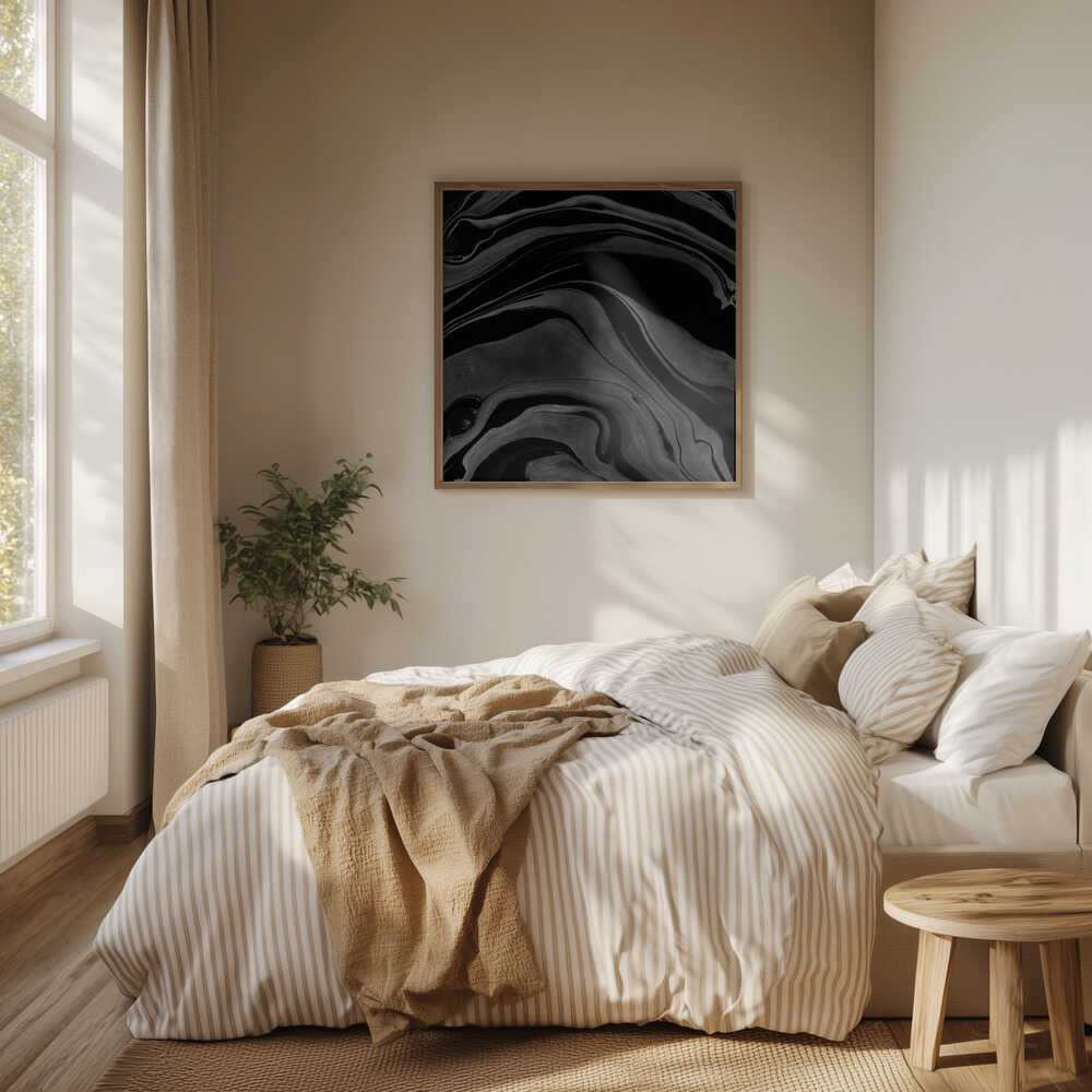 Tabloul înramat „Ink Marbling Black and White 08”, creat de amini54, este disponibil în mai multe dimensiuni, cu ramă neagră, albă sau din lemn natur. Se potrivește perfect în orice încăpere.