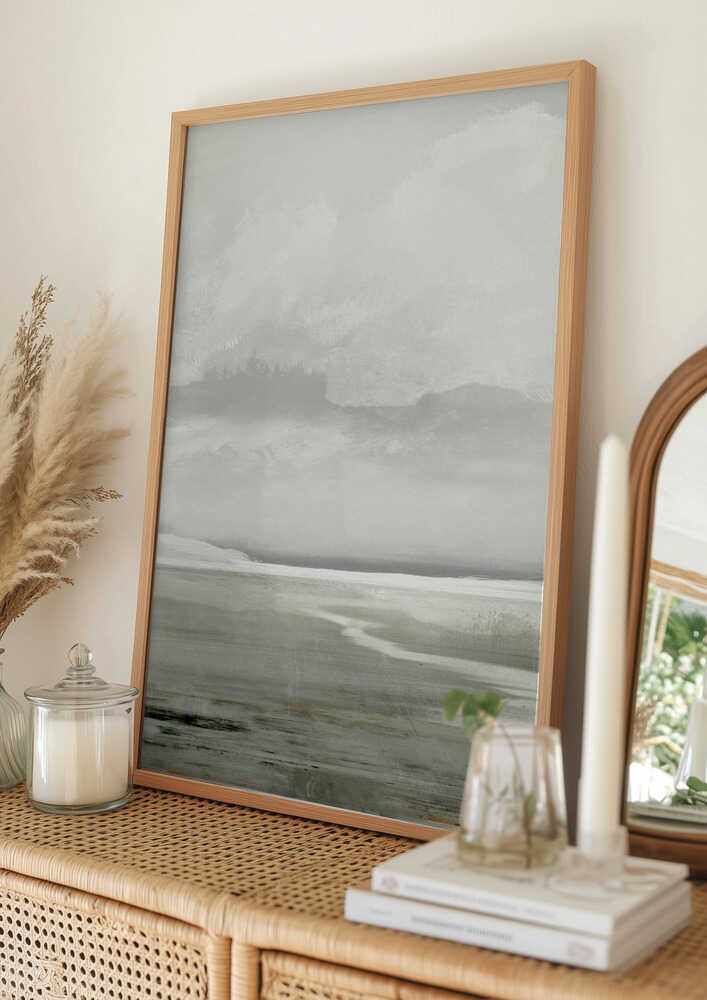 Tabloul înramat „Lakes”, creat de Dan Hobday, este disponibil în mai multe dimensiuni, cu ramă neagră, albă sau din lemn natur. Se potrivește perfect în orice încăpere.