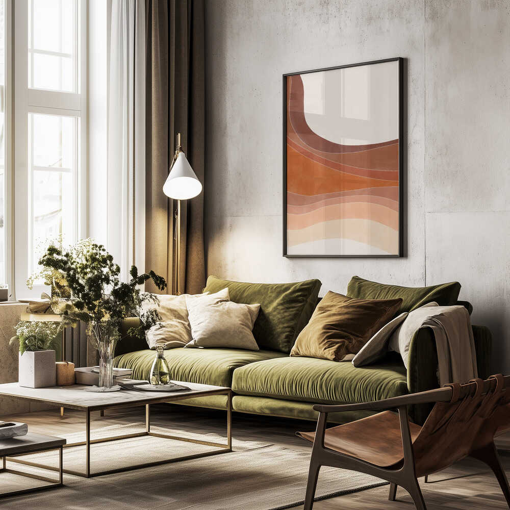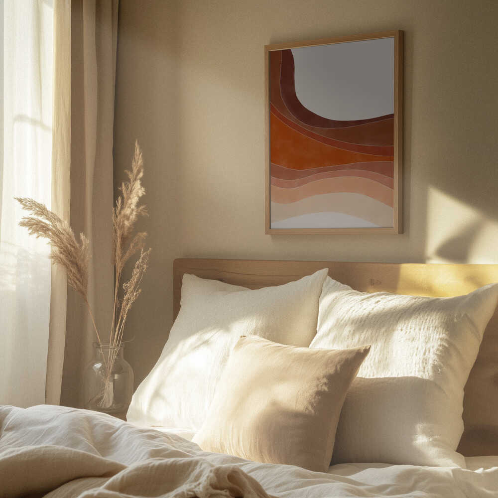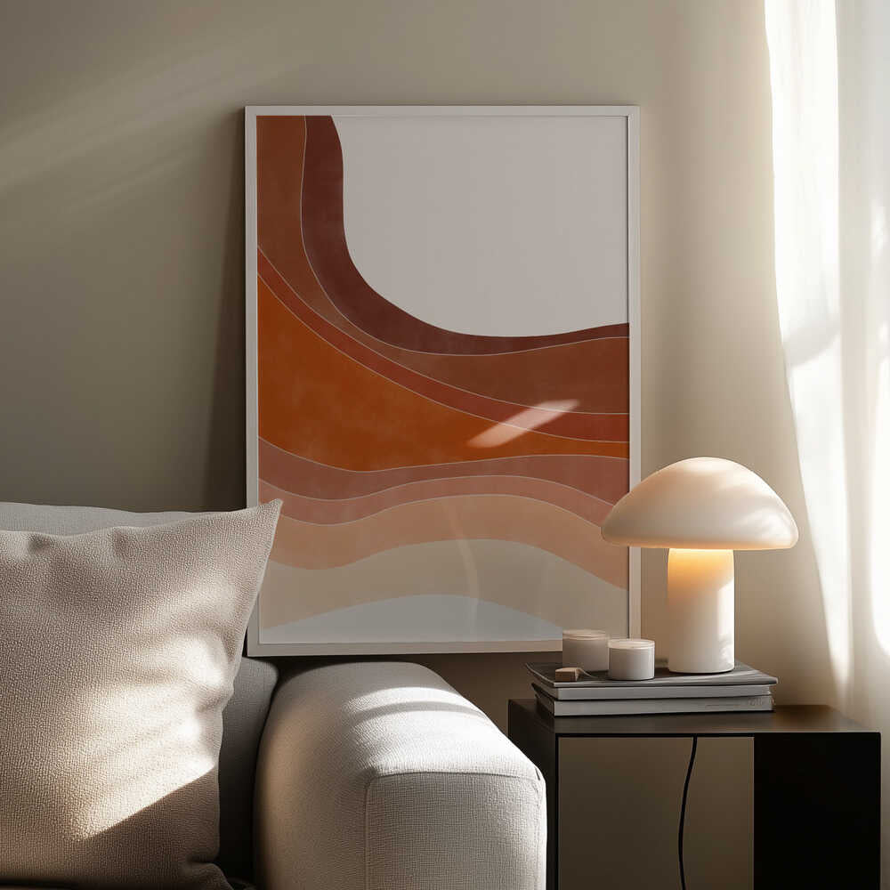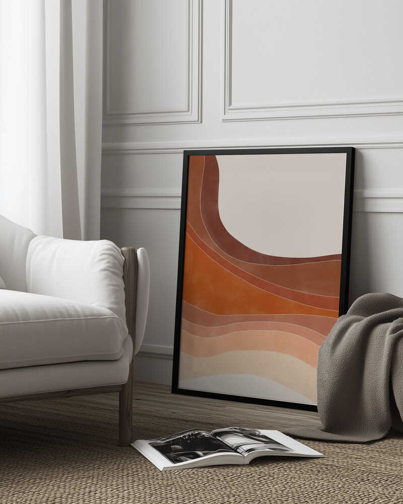 Tabloul înramat „Layered Bands In Earthy Tones”, creat de Elena Ristova, este disponibil în mai multe dimensiuni, cu ramă neagră, albă sau din lemn natur. Se potrivește perfect în orice încăpere.