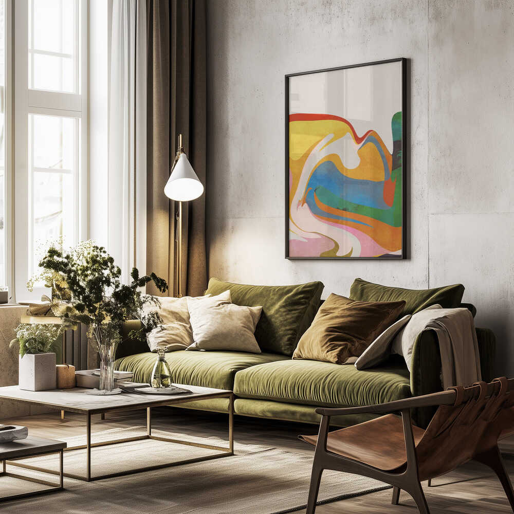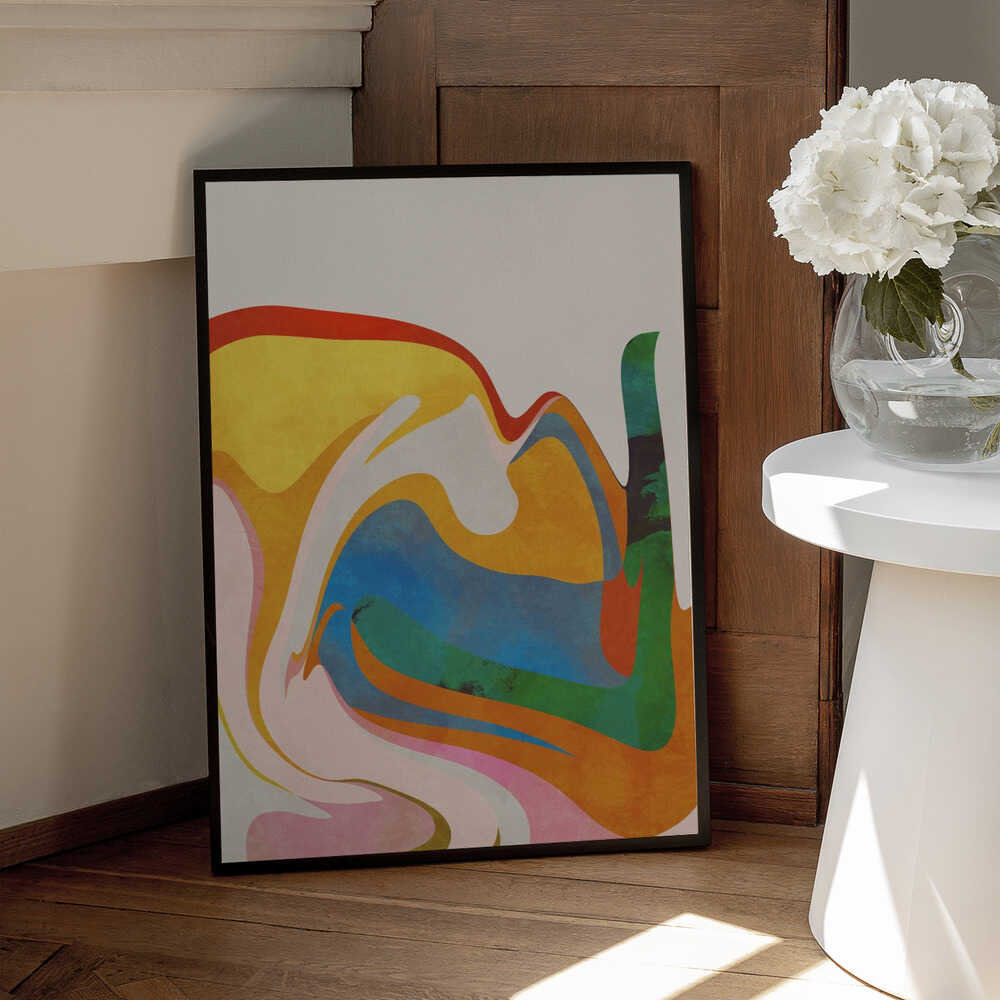 Tabloul înramat „Organic Bauhaus Waved”, creat de Ana Rut Bre, este disponibil în mai multe dimensiuni, cu ramă neagră, albă sau din lemn natur. Se potrivește perfect în orice încăpere.