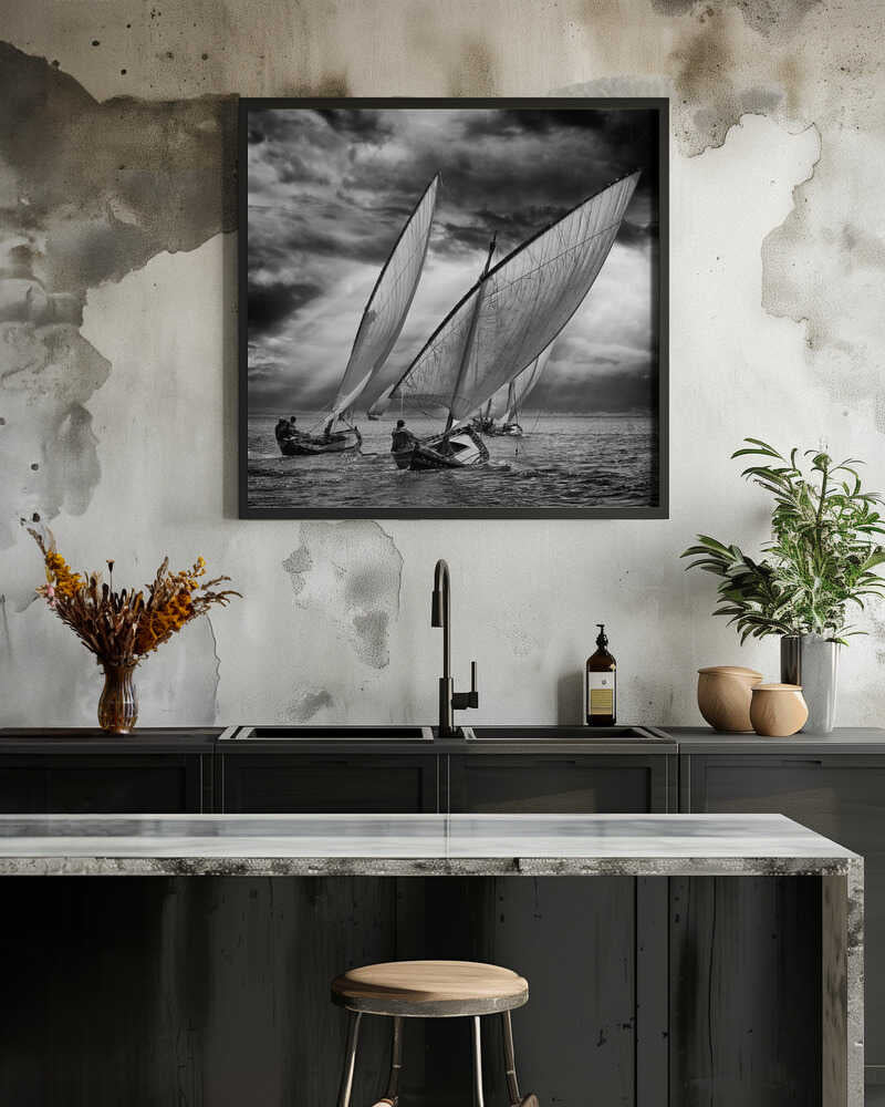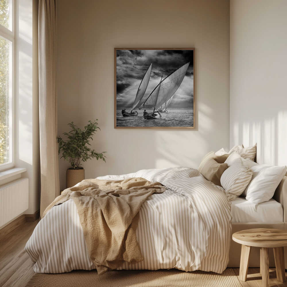 Tabloul înramat „Sailboats and Light”, creat de Angel Villalba, este disponibil în mai multe dimensiuni, cu ramă neagră, albă sau din lemn natur. Se potrivește perfect în orice încăpere.