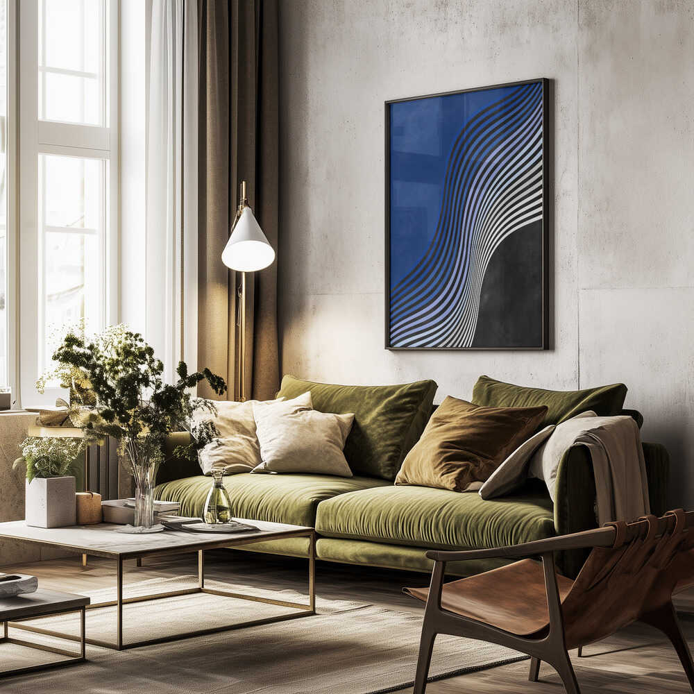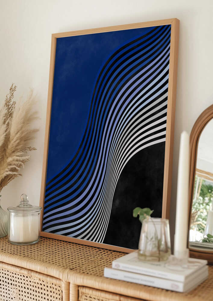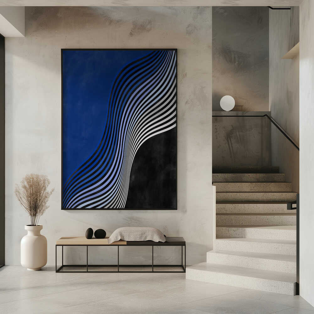 Tabloul înramat „Waves of Contrast”, creat de Elena Ristova, este disponibil în mai multe dimensiuni, cu ramă neagră, albă sau din lemn natur. Se potrivește perfect în orice încăpere.