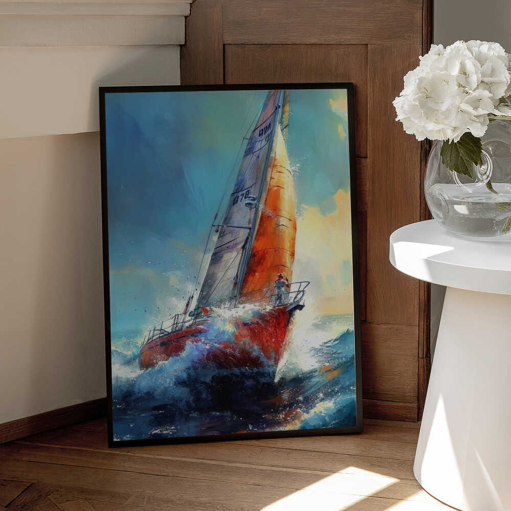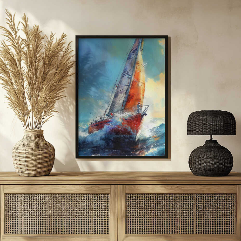 Tabloul înramat „Yacht racing sport art 30”, creat de Justyna Jaszke, este disponibil în mai multe dimensiuni, cu ramă neagră, albă sau din lemn natur. Se potrivește perfect în orice încăpere.