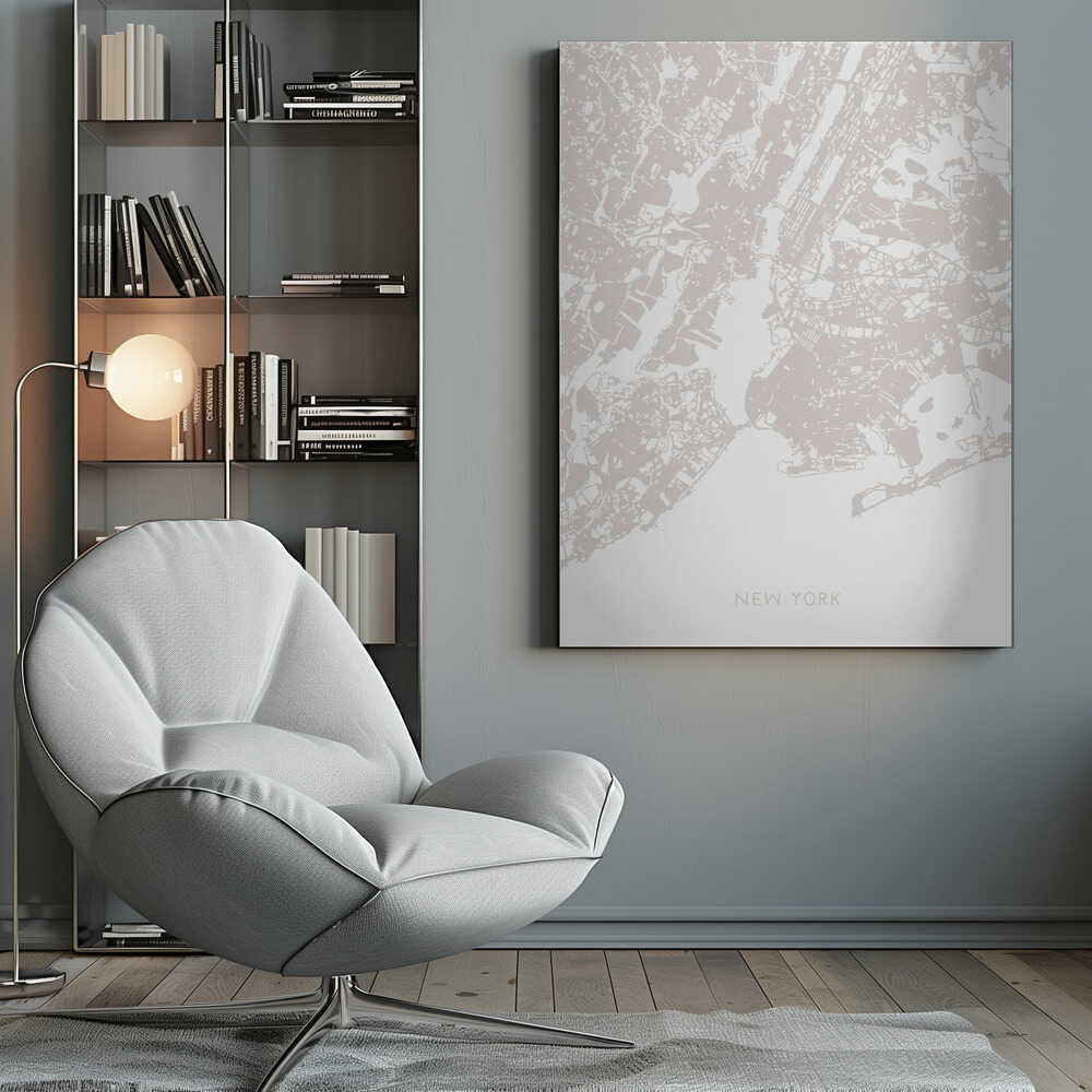 Tablou canvas „New York Map” creat de Pictufy Studio II, imprimat pe pânză de calitate, gata de agățat. Disponibil în mai multe dimensiuni. Perfect pentru orice spațiu.