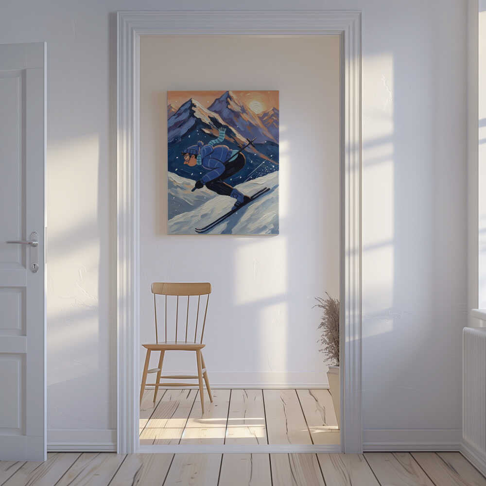 Tablou canvas „The joy of skiing” creat de HUGO, imprimat pe pânză de calitate, gata de agățat. Disponibil în mai multe dimensiuni. Perfect pentru orice spațiu.