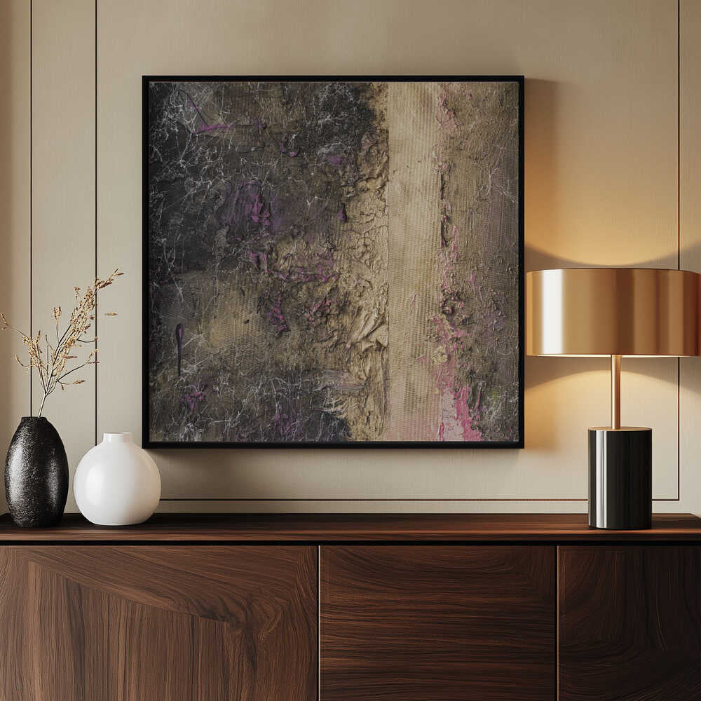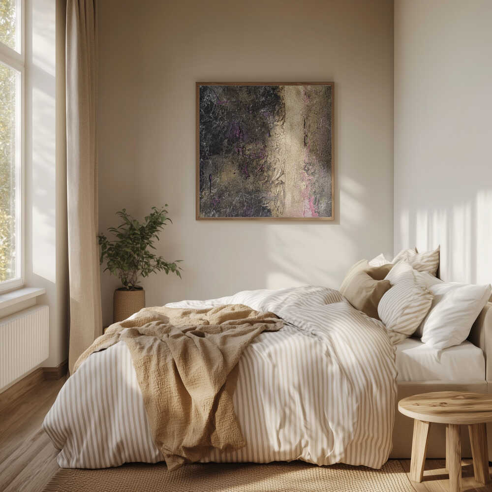 Tabloul înramat „Fractured Gilt”, creat de Anete Purina-Purite, este disponibil în mai multe dimensiuni, cu ramă neagră, albă sau din lemn natur. Se potrivește perfect în orice încăpere.