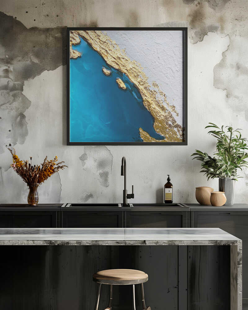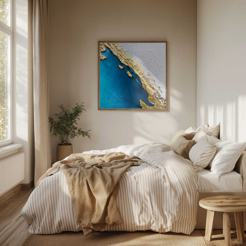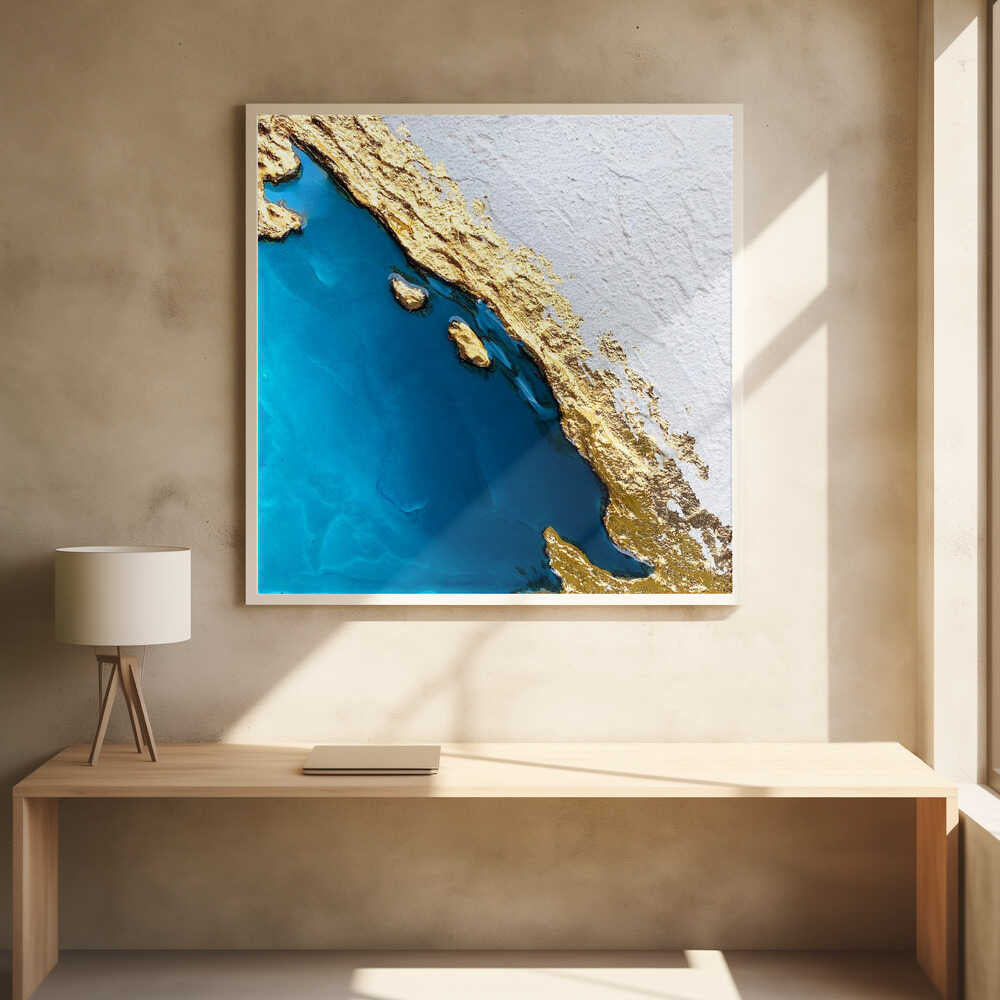 Tabloul înramat „Frozen Golden Ocean 2”, creat de Alyson Storms, este disponibil în mai multe dimensiuni, cu ramă neagră, albă sau din lemn natur. Se potrivește perfect în orice încăpere.
