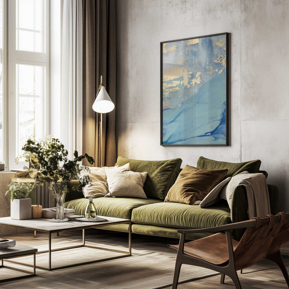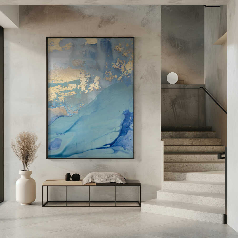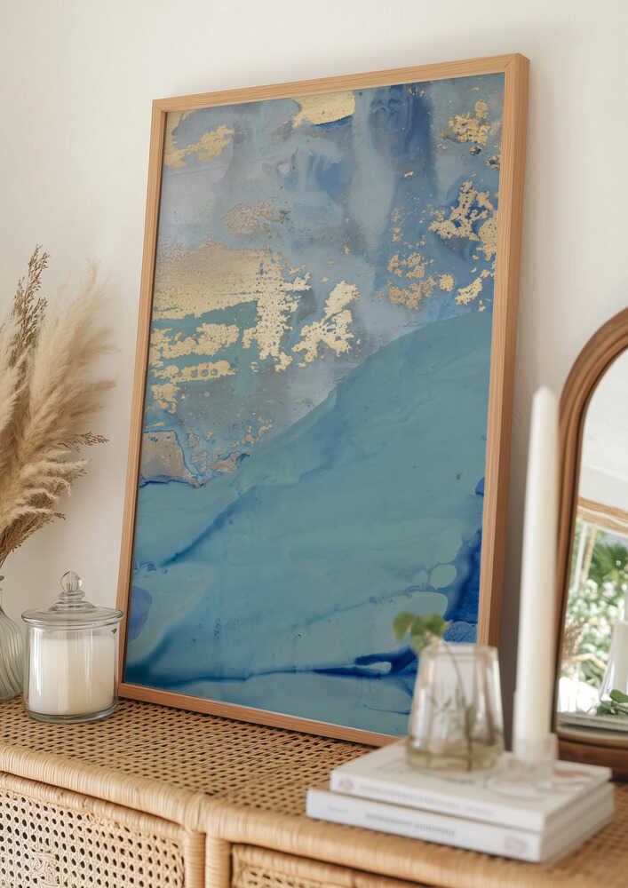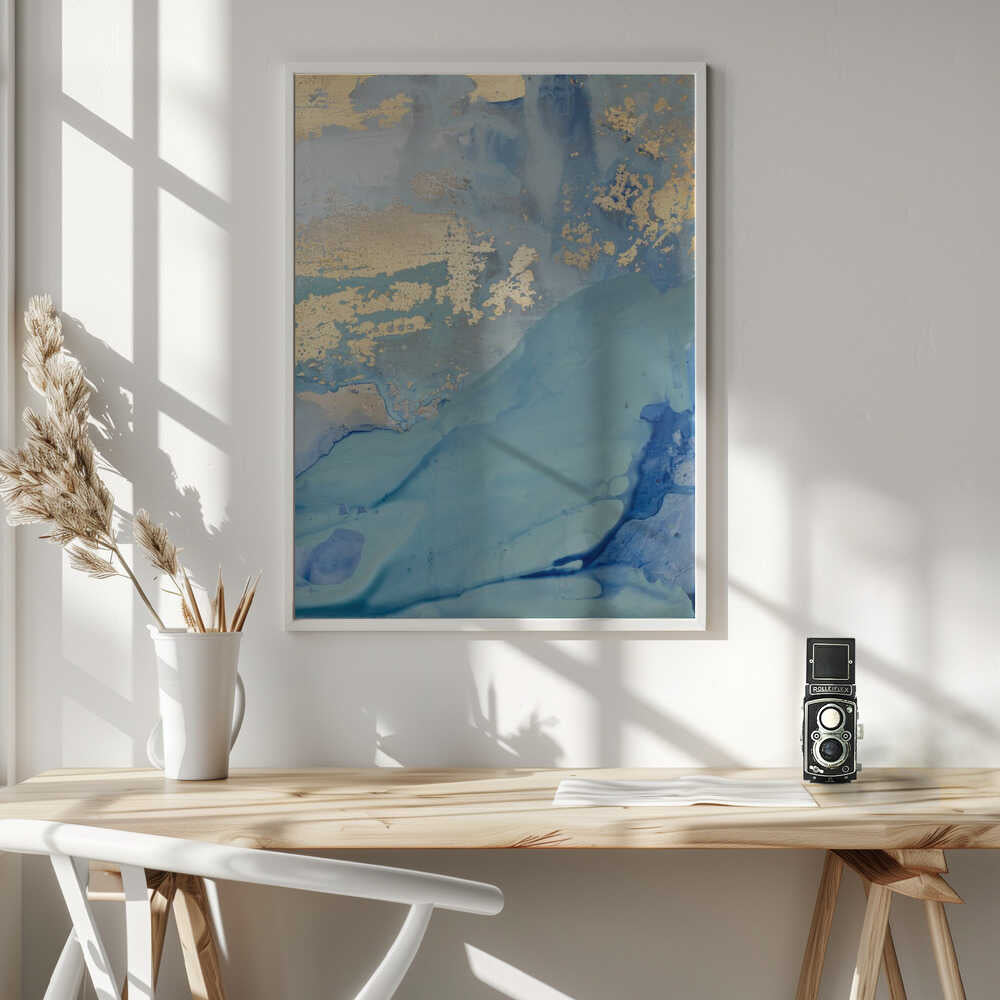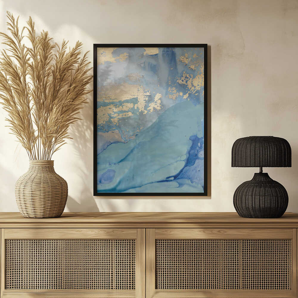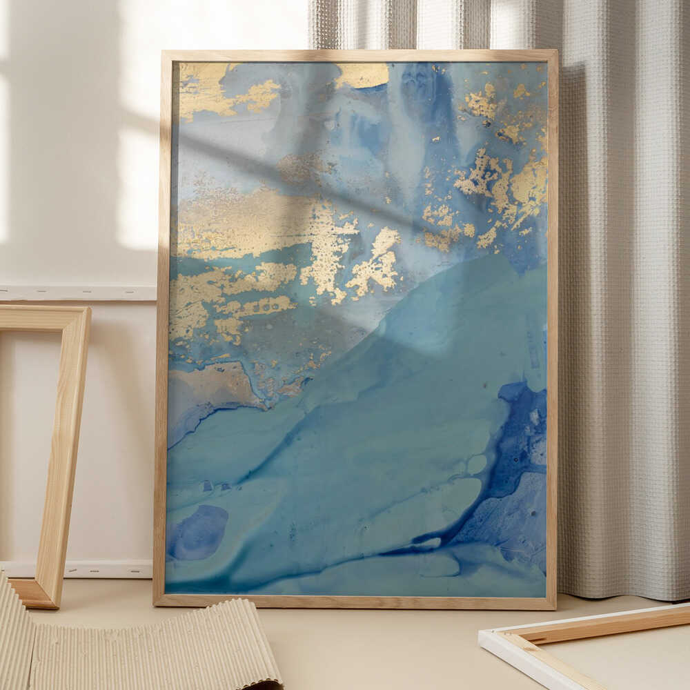 Tabloul înramat „Golden Wavescape”, creat de Julia Contacessi, este disponibil în mai multe dimensiuni, cu ramă neagră, albă sau din lemn natur. Se potrivește perfect în orice încăpere.