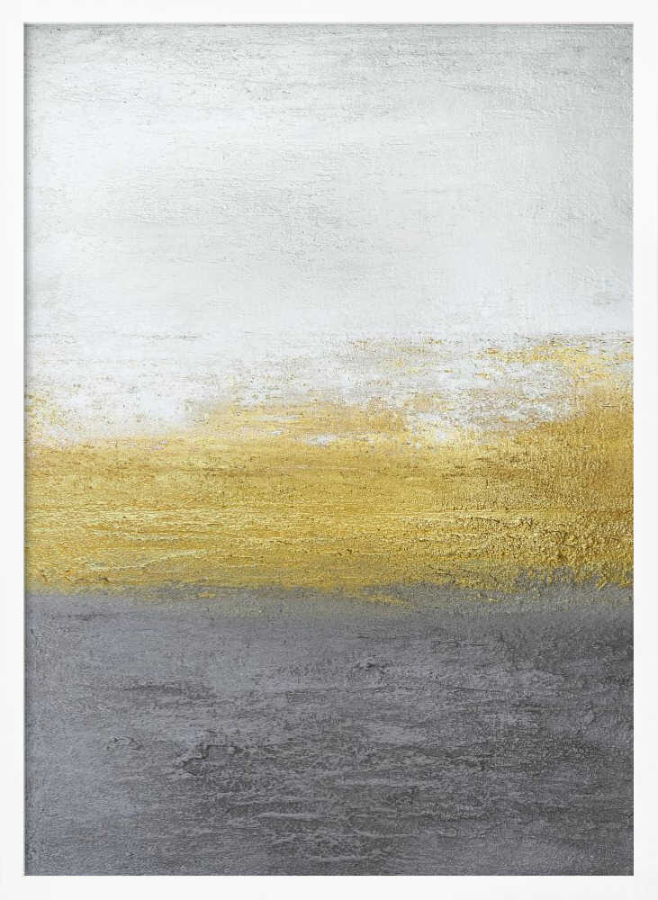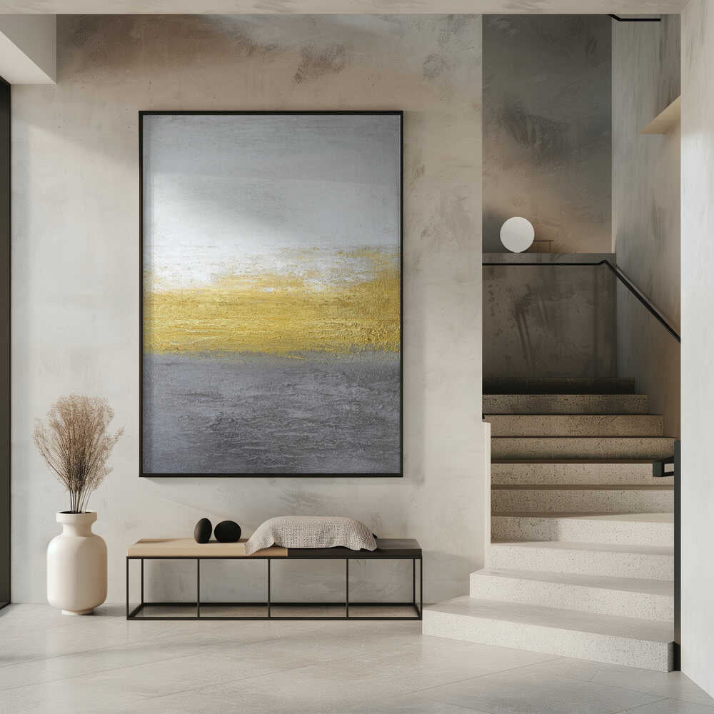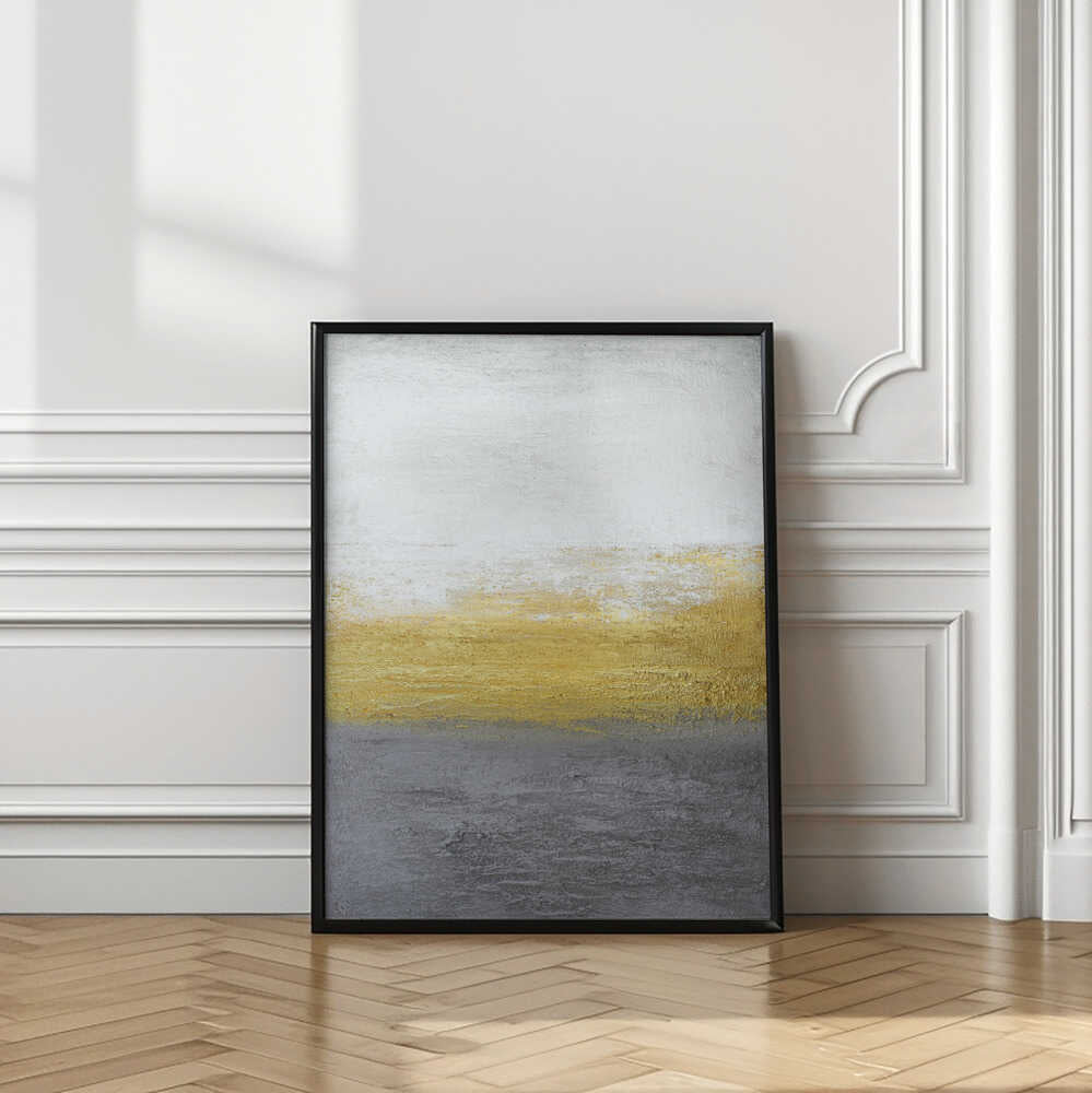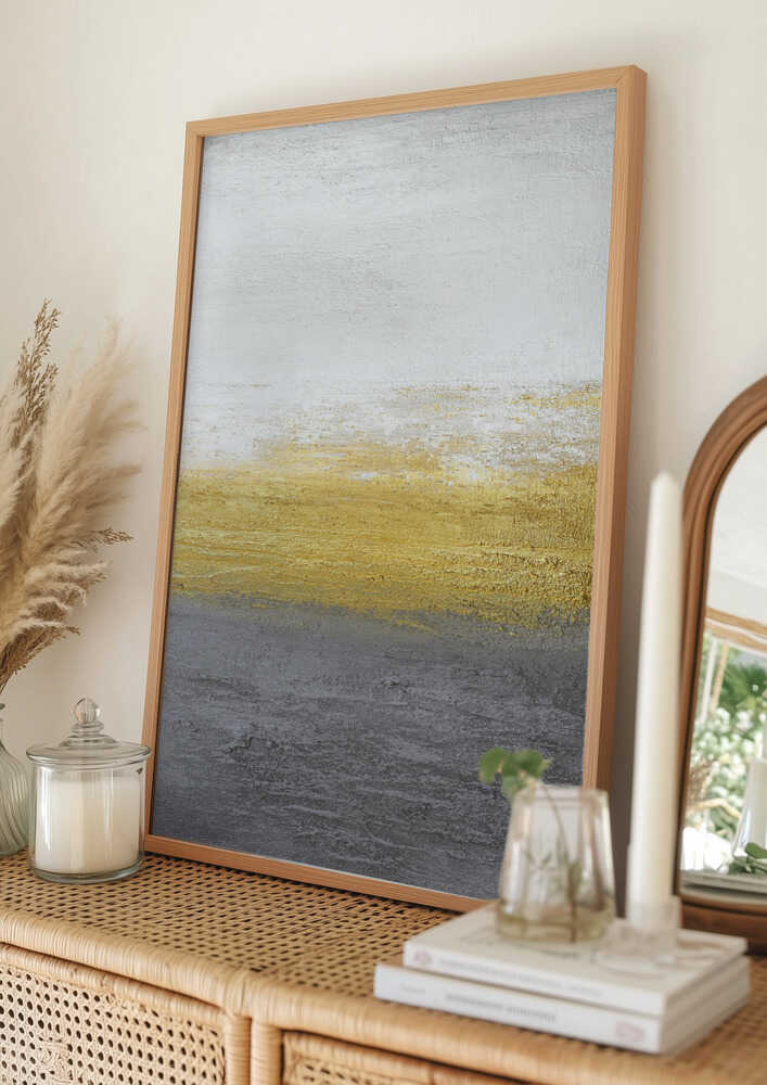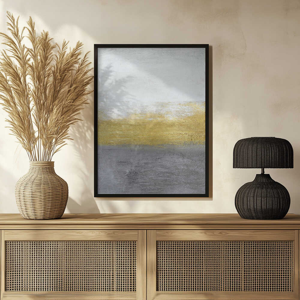 Tabloul înramat „Gray and Gold”, creat de Alyson Storms, este disponibil în mai multe dimensiuni, cu ramă neagră, albă sau din lemn natur. Se potrivește perfect în orice încăpere.