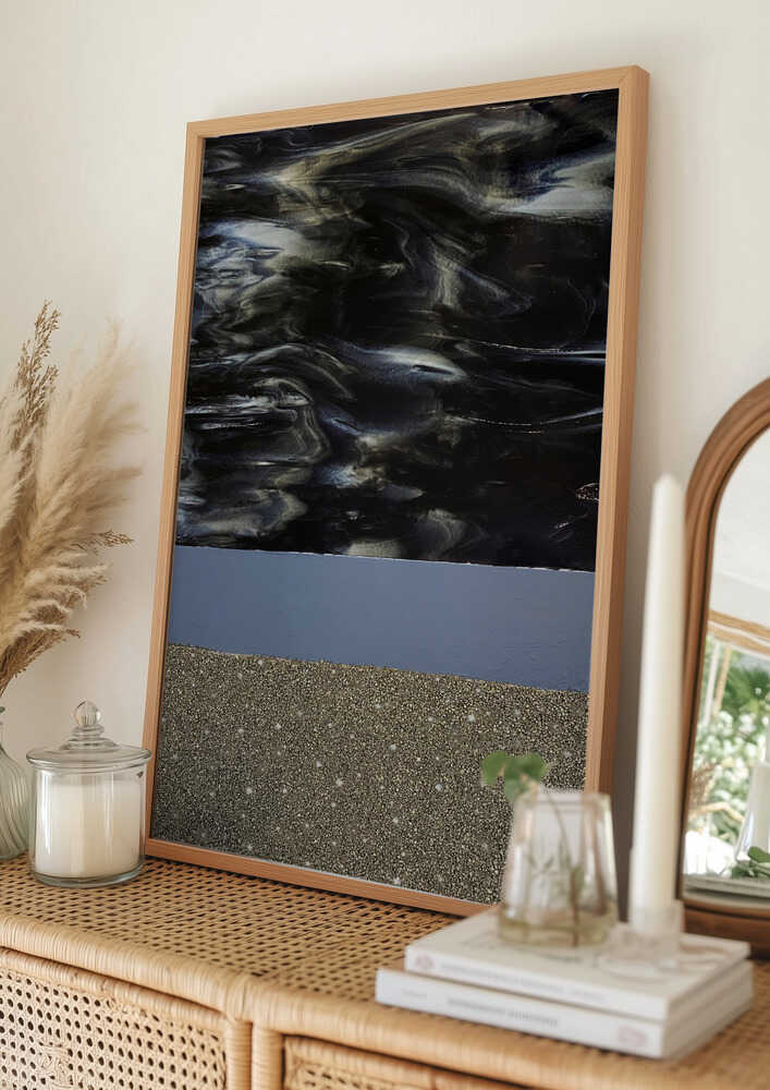 Tabloul înramat „Midnight Magic”, creat de Alyson Storms, este disponibil în mai multe dimensiuni, cu ramă neagră, albă sau din lemn natur. Se potrivește perfect în orice încăpere.