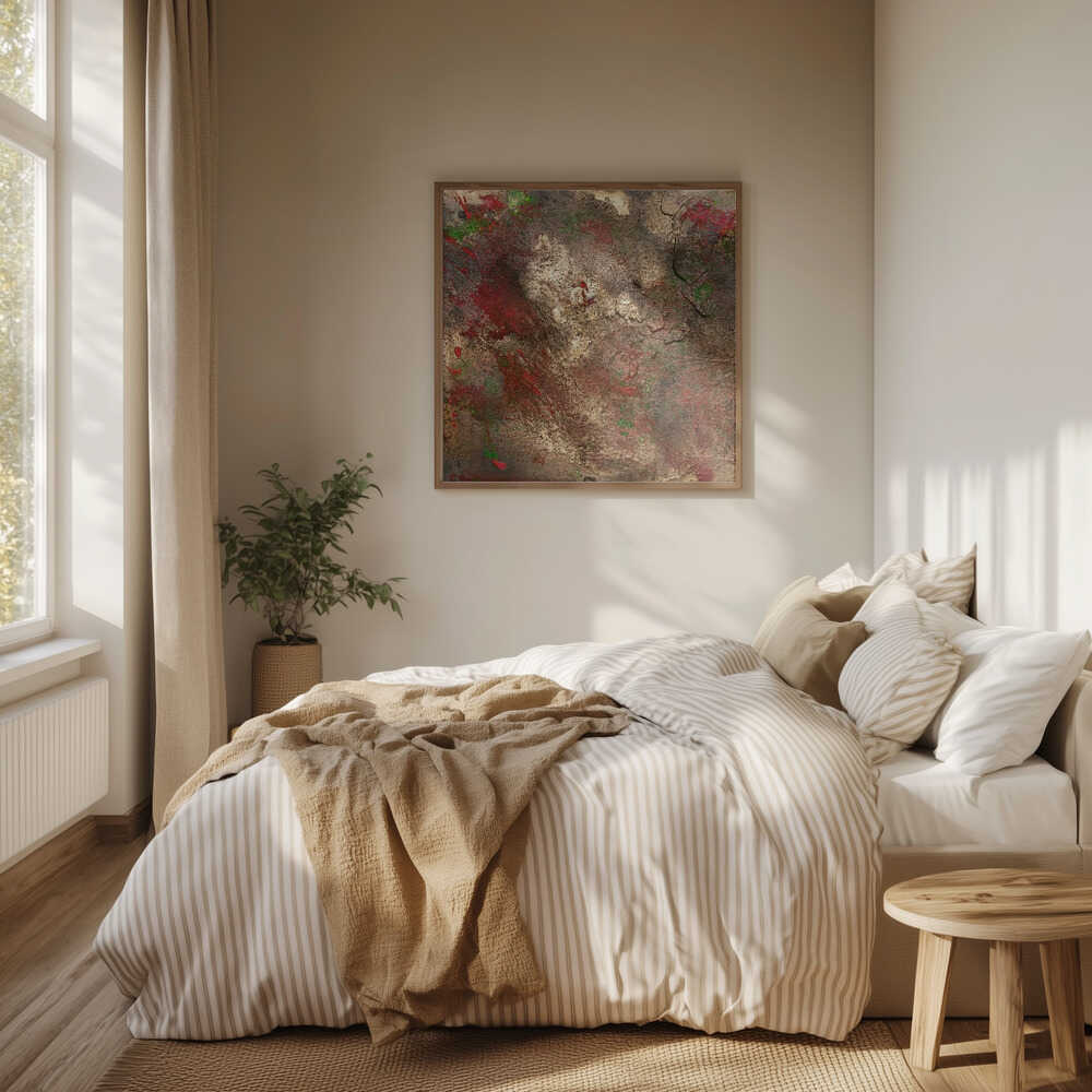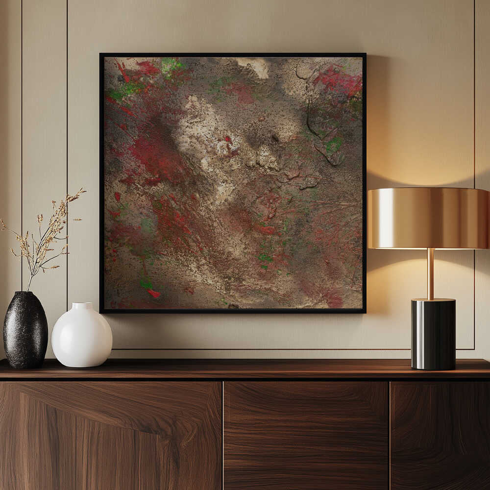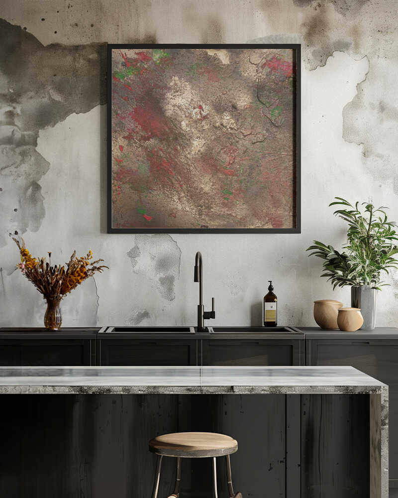 Tabloul înramat „Oxidized Glories”, creat de Anete Purina-Purite, este disponibil în mai multe dimensiuni, cu ramă neagră, albă sau din lemn natur. Se potrivește perfect în orice încăpere.