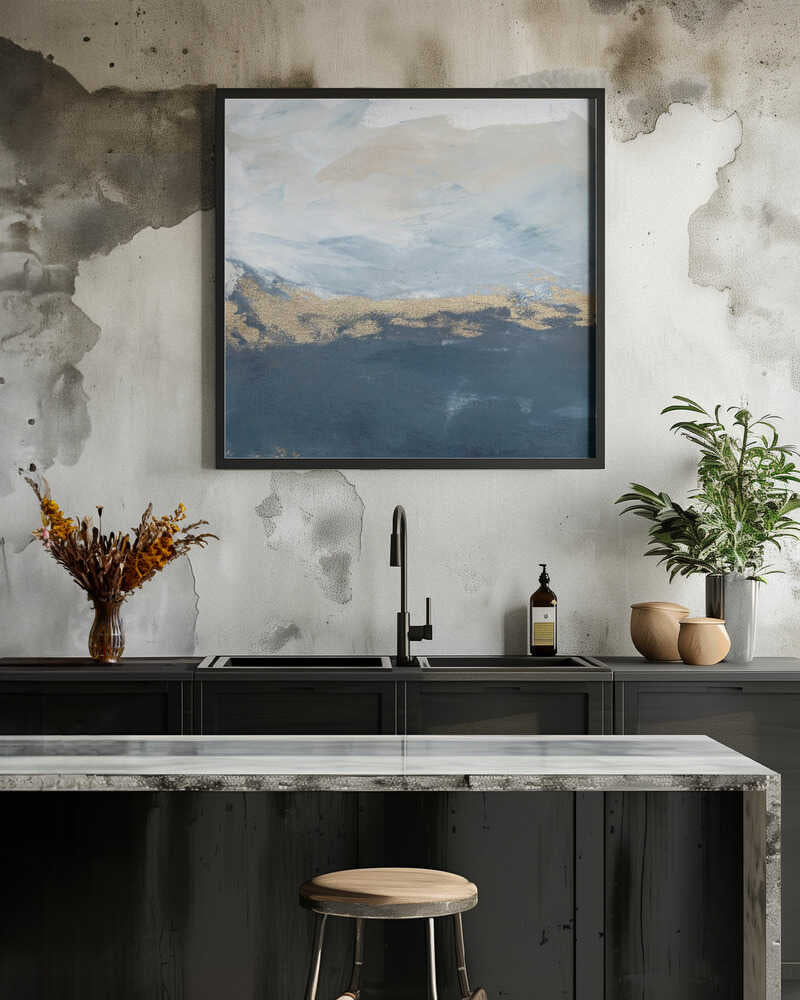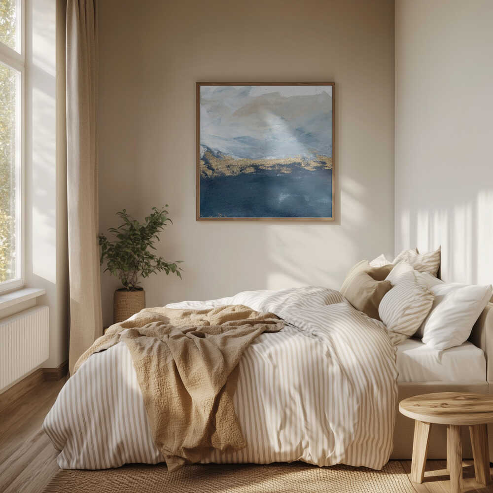 Tabloul înramat „Peaceful Golden Horizon”, creat de Julia Contacessi, este disponibil în mai multe dimensiuni, cu ramă neagră, albă sau din lemn natur. Se potrivește perfect în orice încăpere.