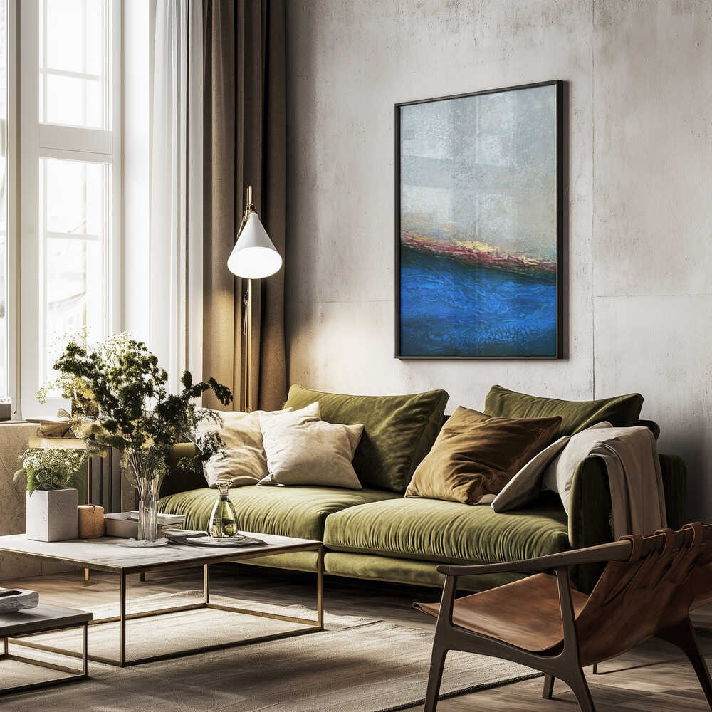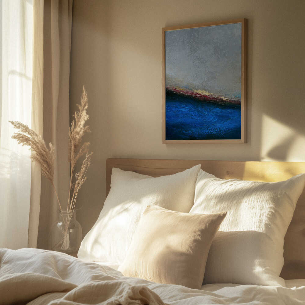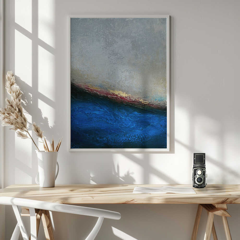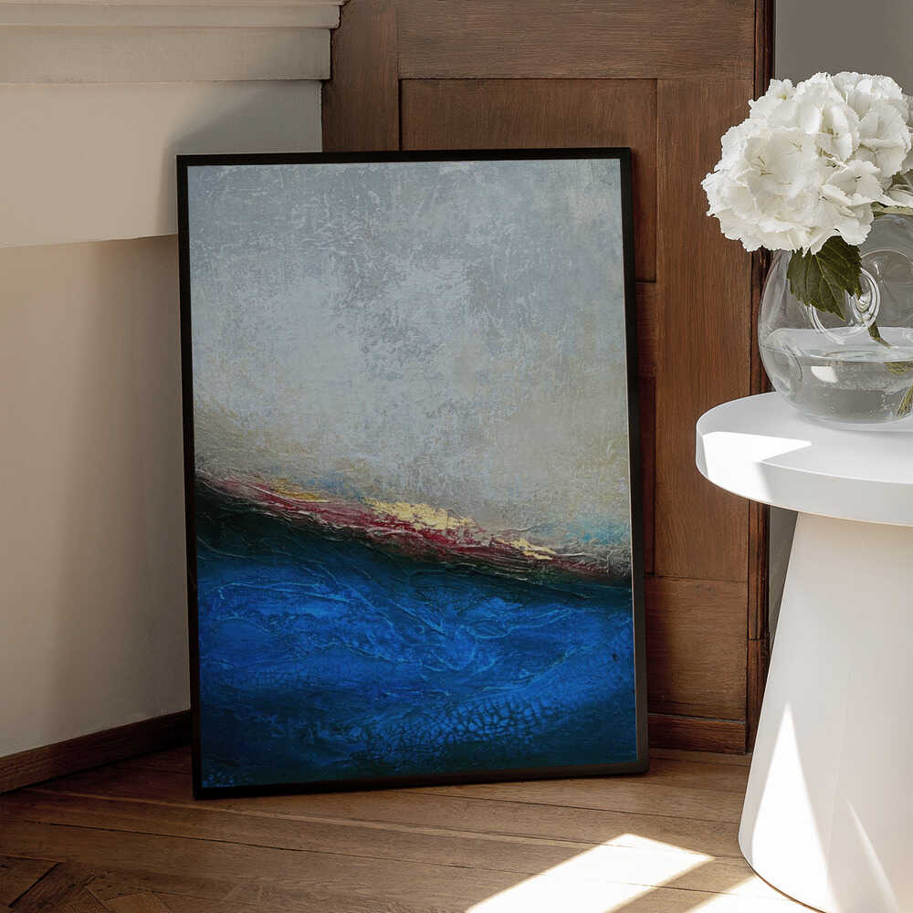 Tabloul înramat „Slate Wave”, creat de Alyson Storms, este disponibil în mai multe dimensiuni, cu ramă neagră, albă sau din lemn natur. Se potrivește perfect în orice încăpere.