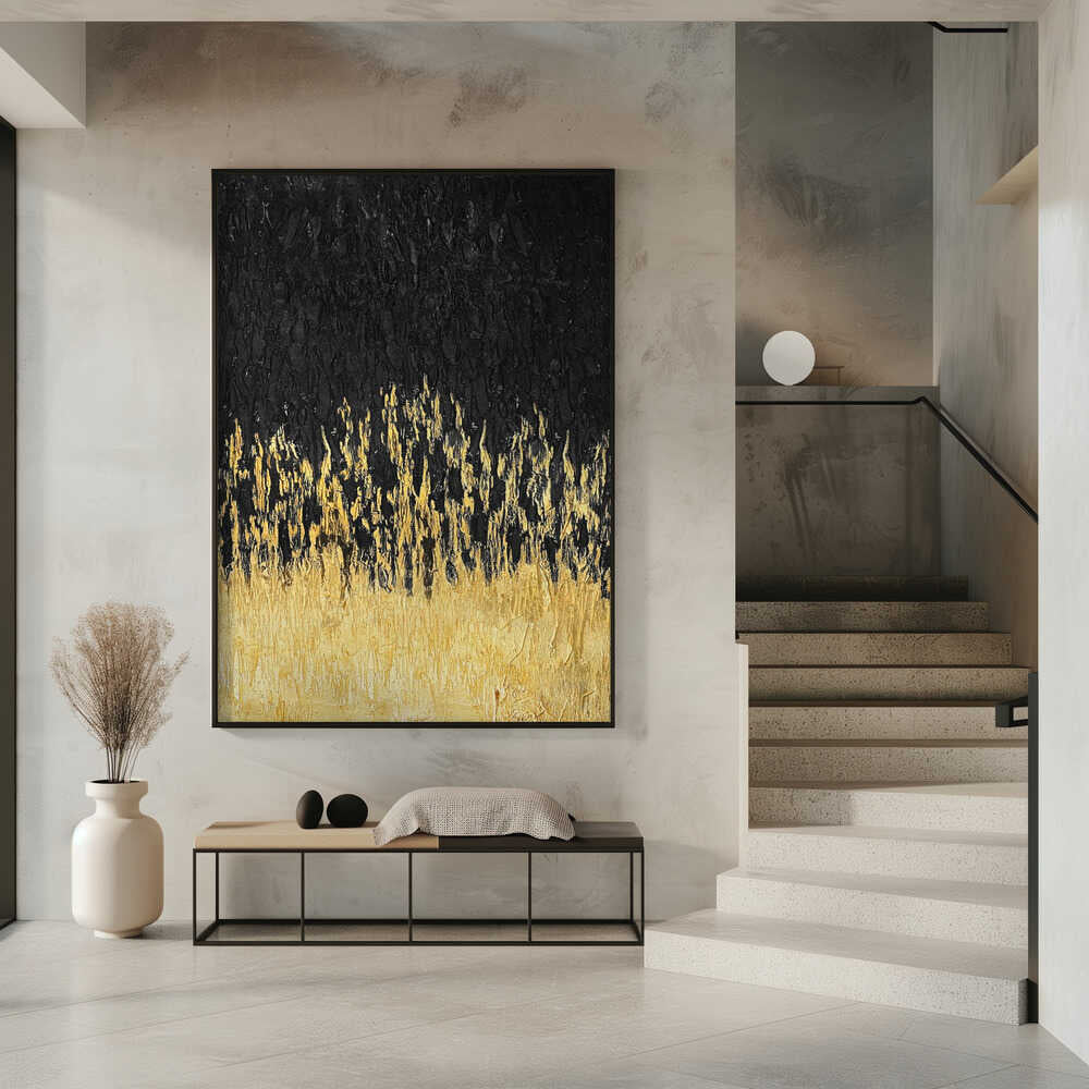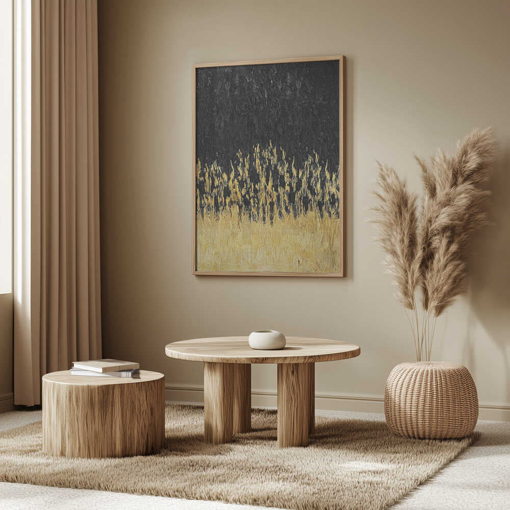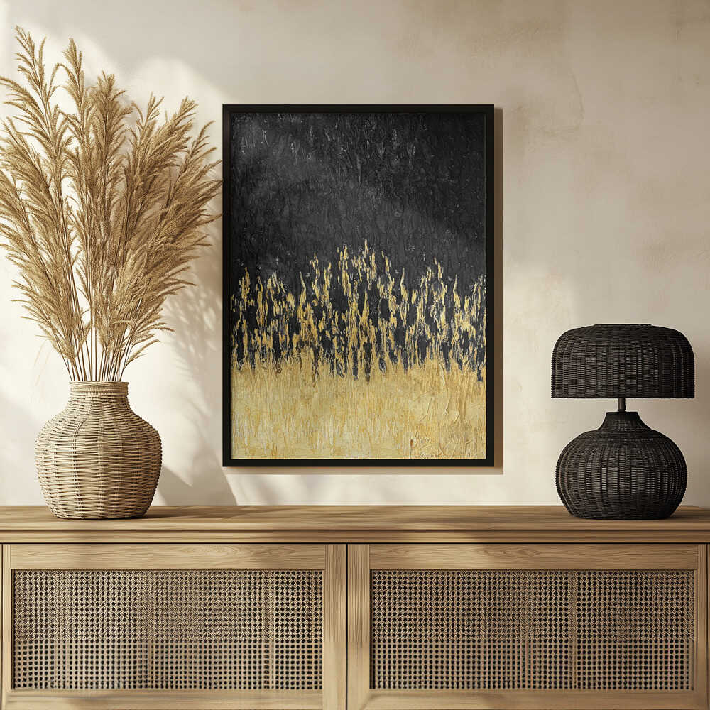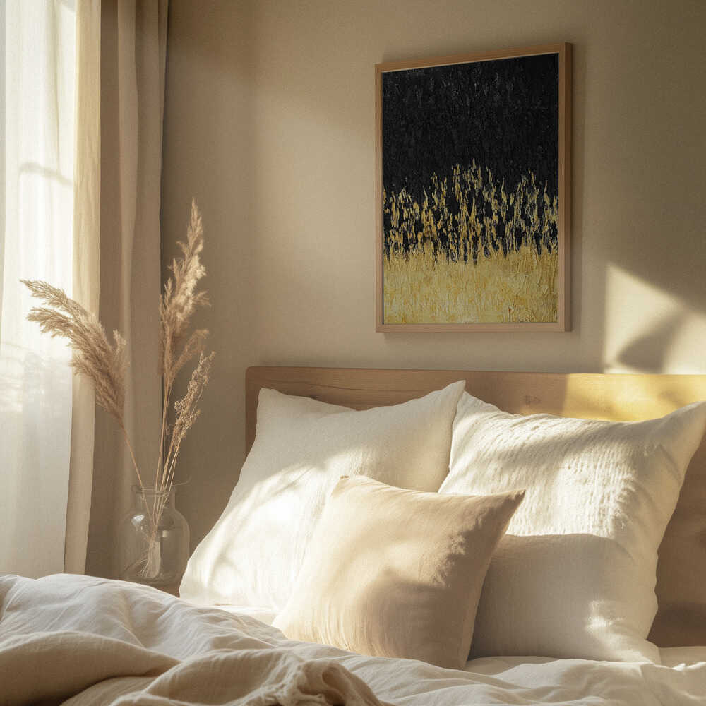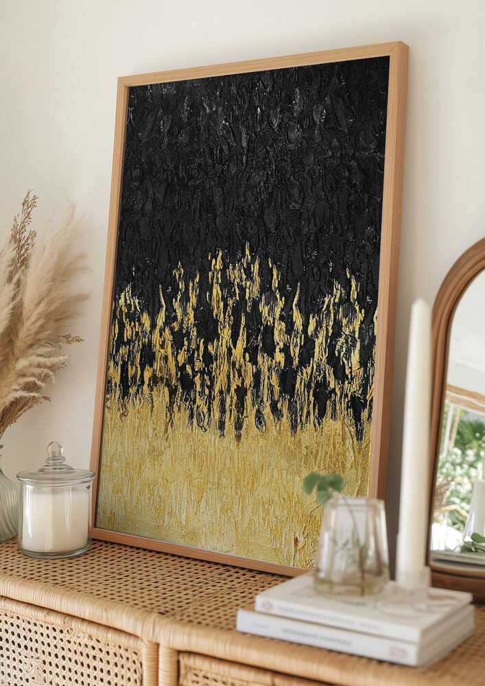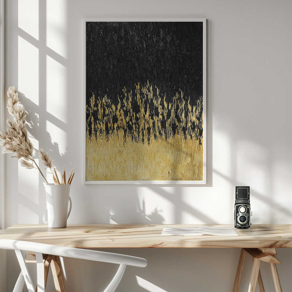 Tabloul înramat „Starry Golden Night”, creat de Alyson Storms, este disponibil în mai multe dimensiuni, cu ramă neagră, albă sau din lemn natur. Se potrivește perfect în orice încăpere.