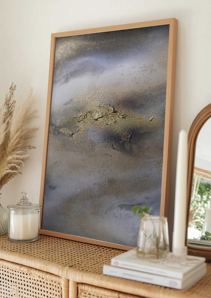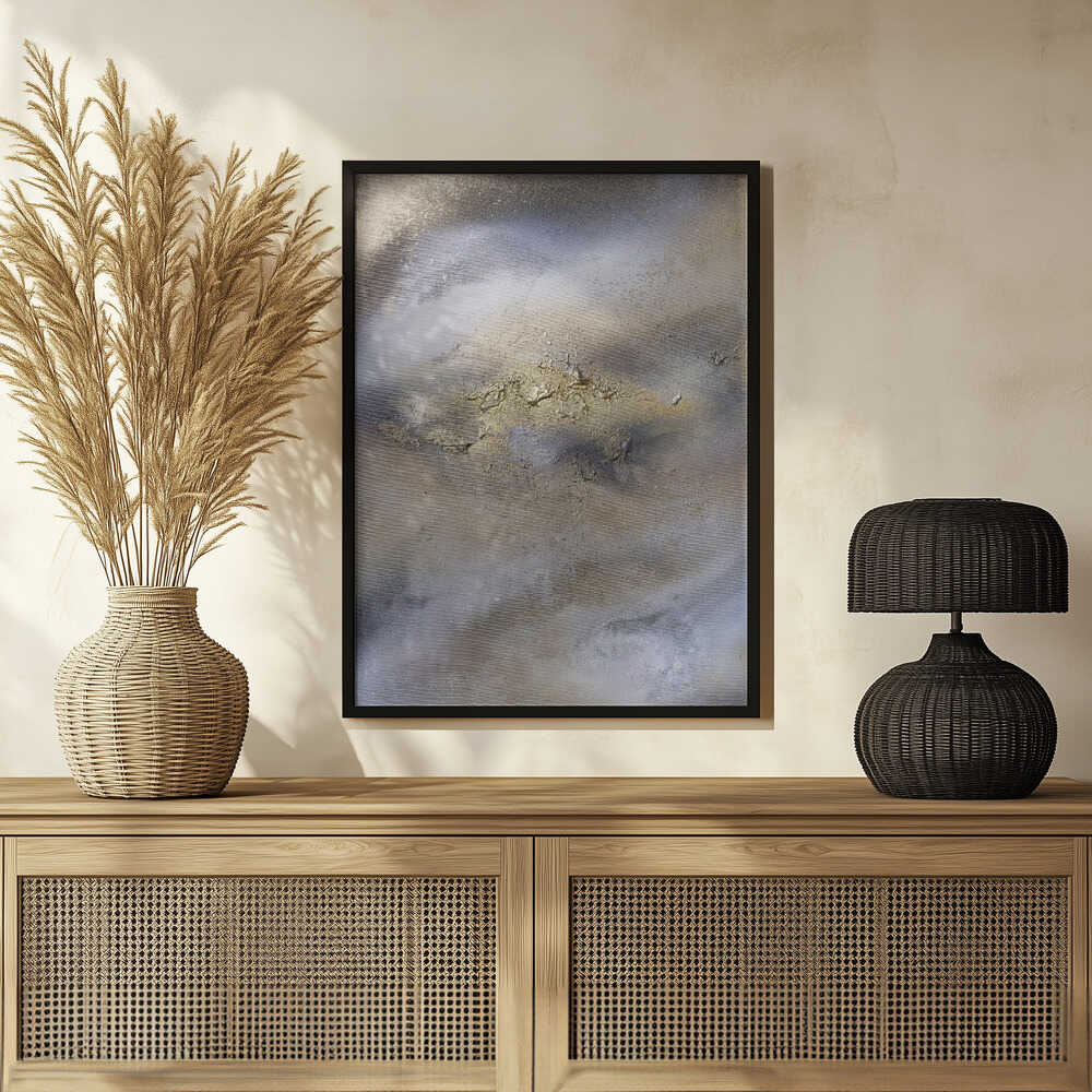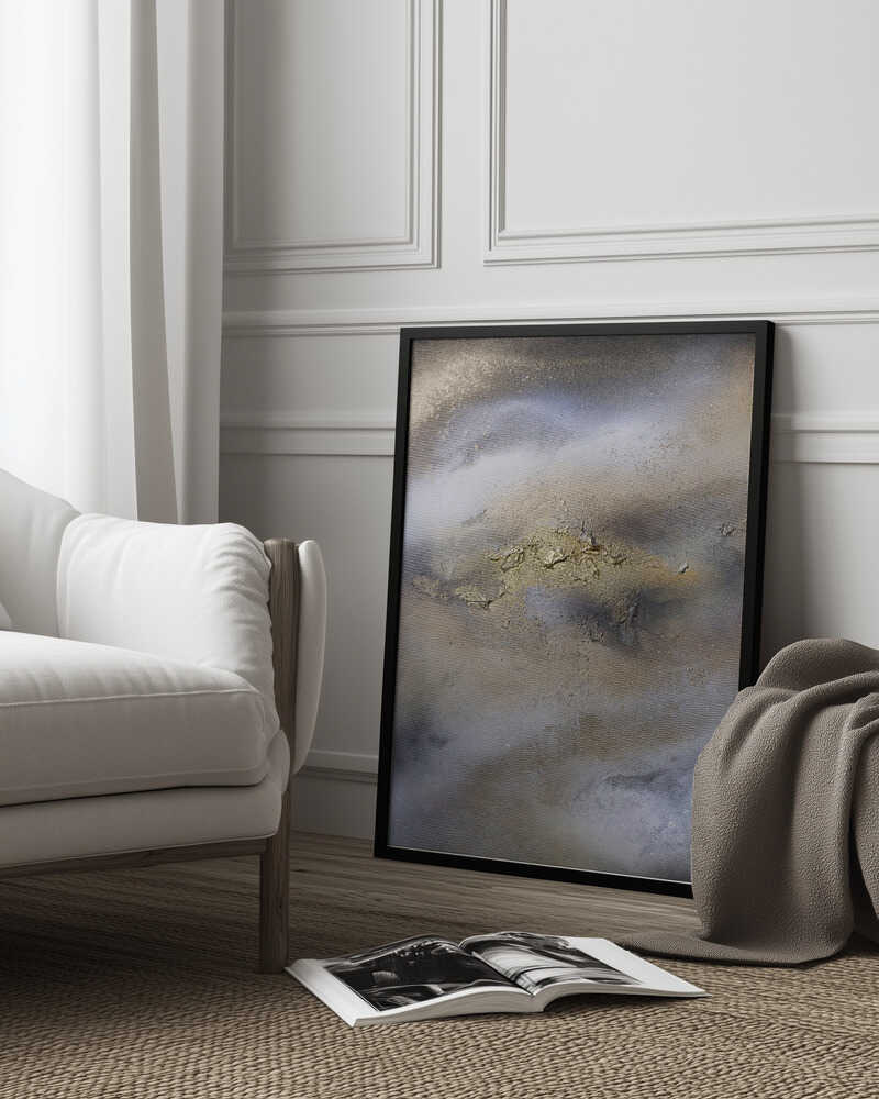 Tabloul înramat „Textured Calm”, creat de Anete Purina-Purite, este disponibil în mai multe dimensiuni, cu ramă neagră, albă sau din lemn natur. Se potrivește perfect în orice încăpere.