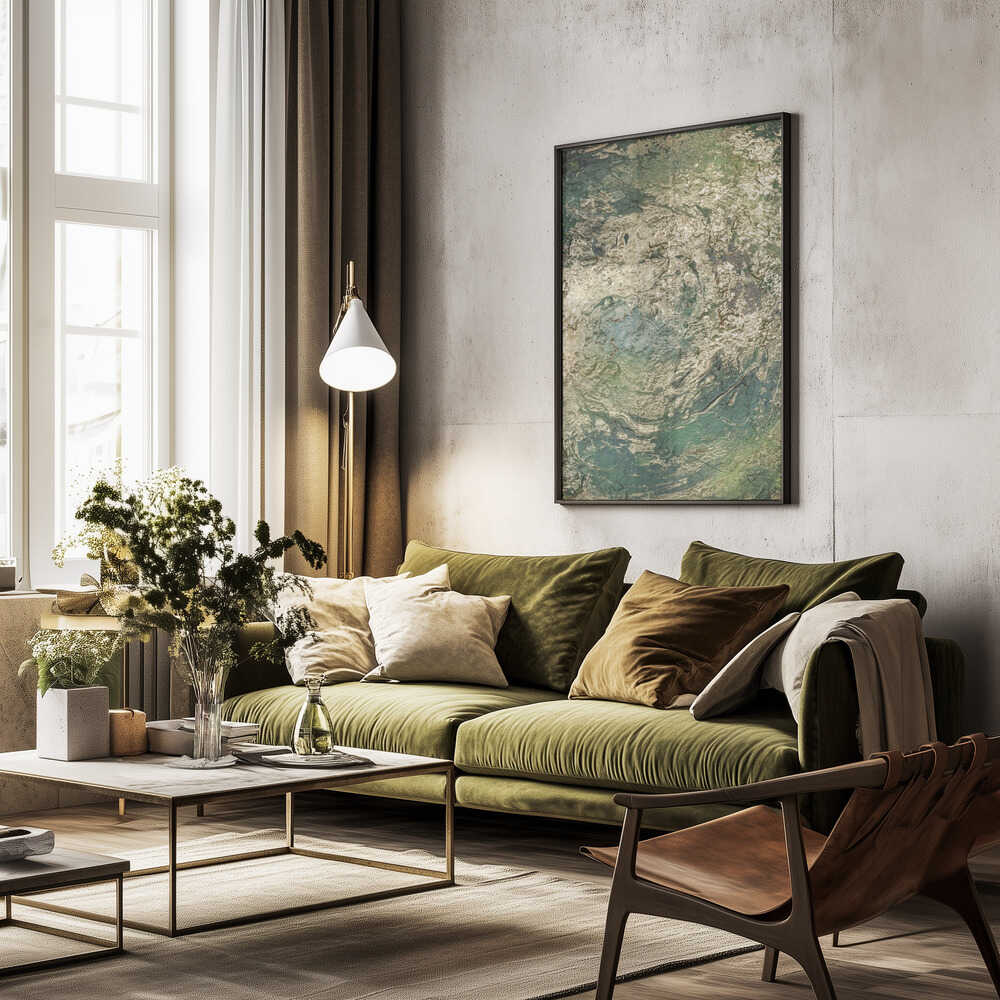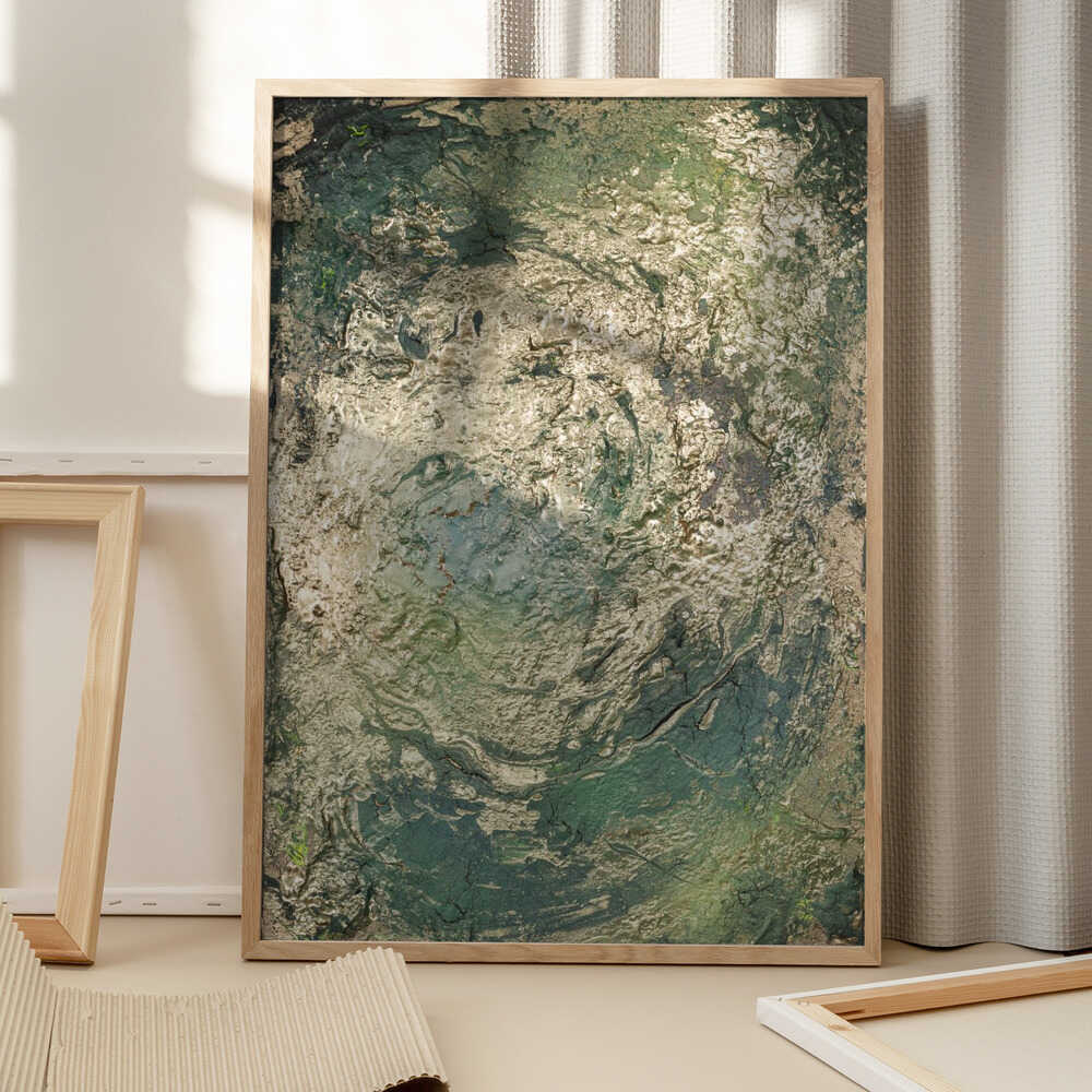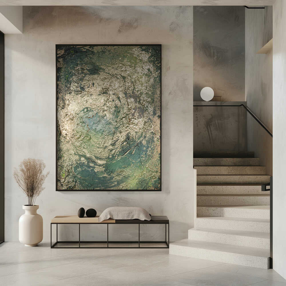 Tabloul înramat „The Emerald Scorch”, creat de Anete Purina-Purite, este disponibil în mai multe dimensiuni, cu ramă neagră, albă sau din lemn natur. Se potrivește perfect în orice încăpere.