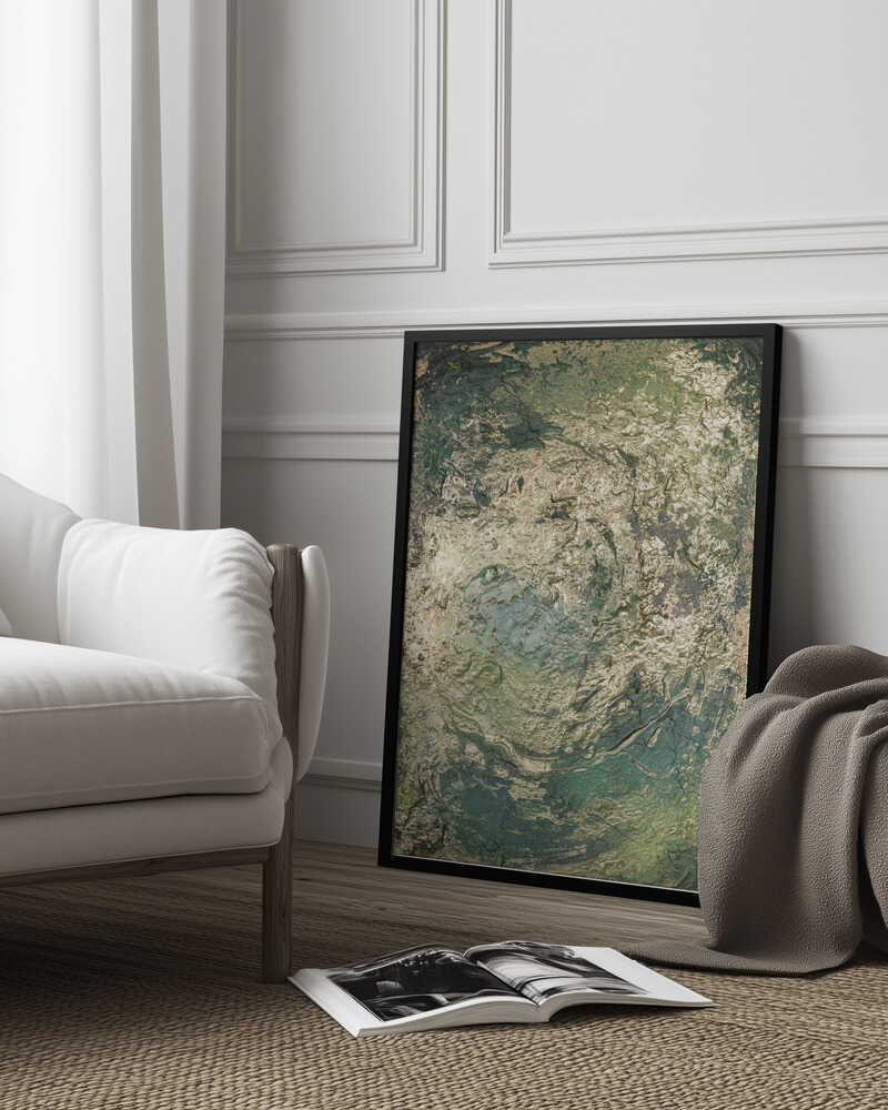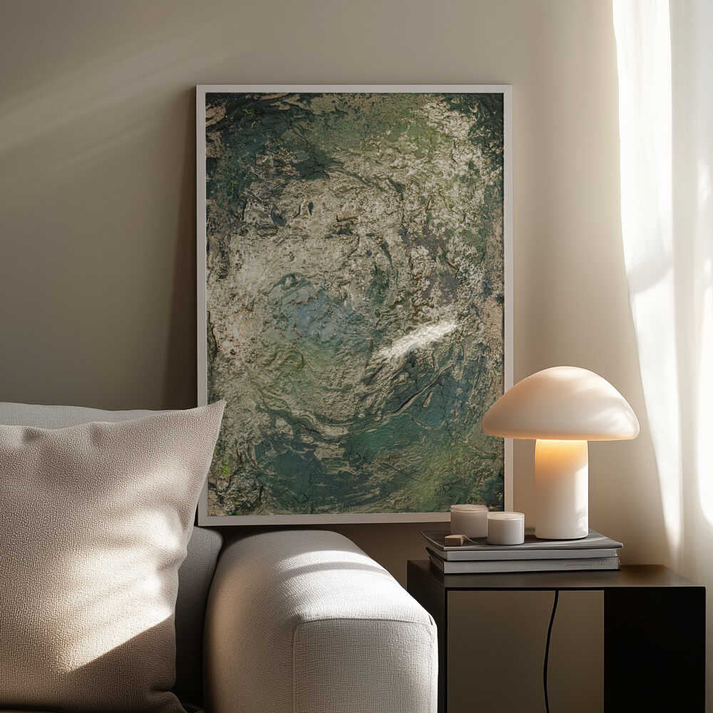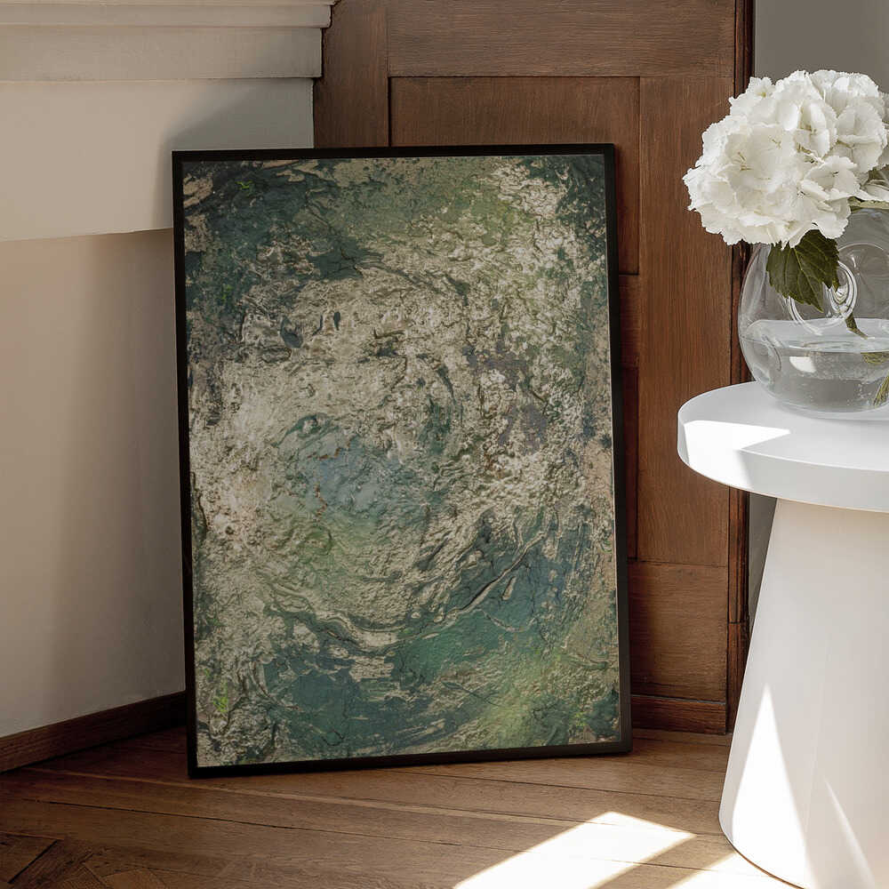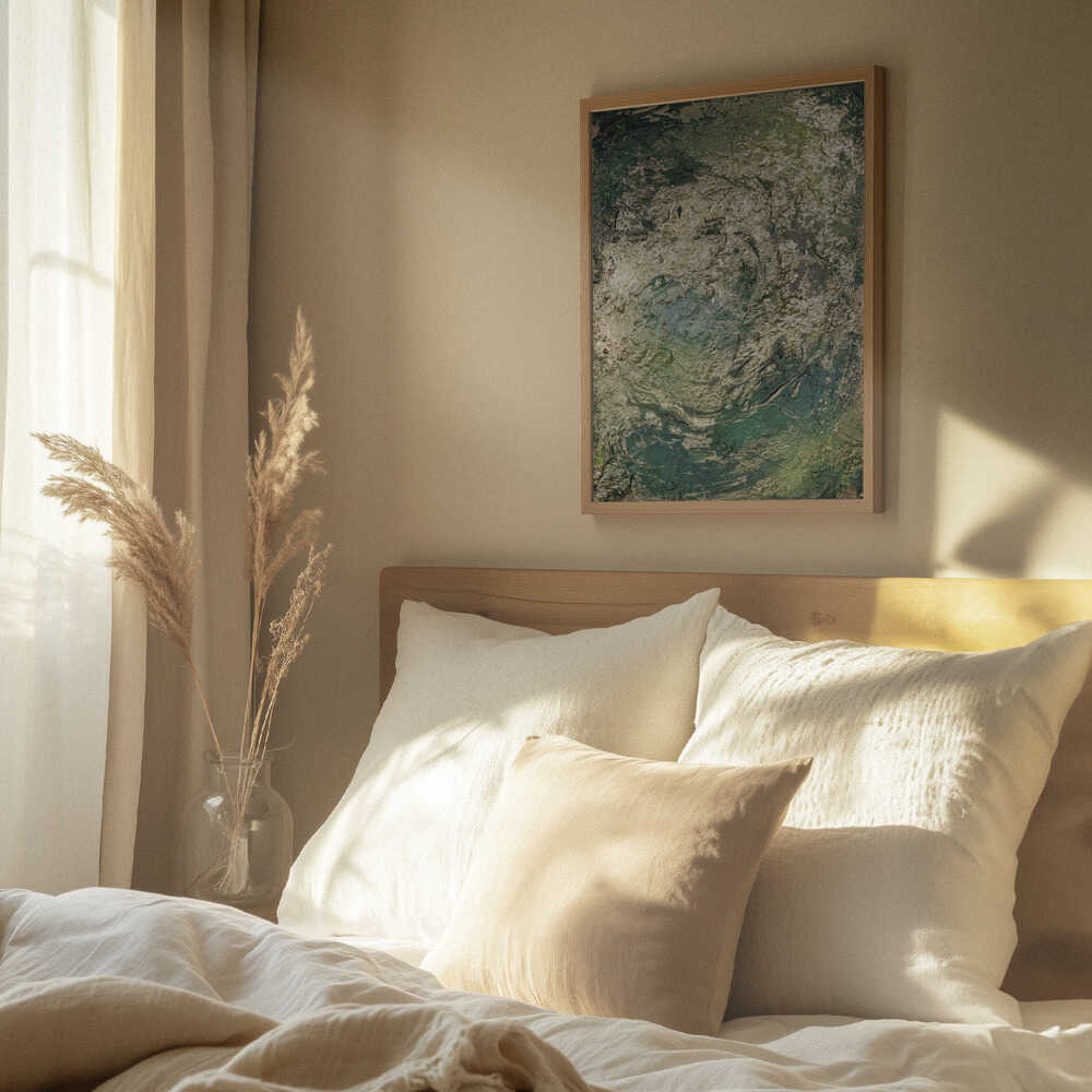 Tabloul înramat „The Emerald Scorch”, creat de Anete Purina-Purite, este disponibil în mai multe dimensiuni, cu ramă neagră, albă sau din lemn natur. Se potrivește perfect în orice încăpere.