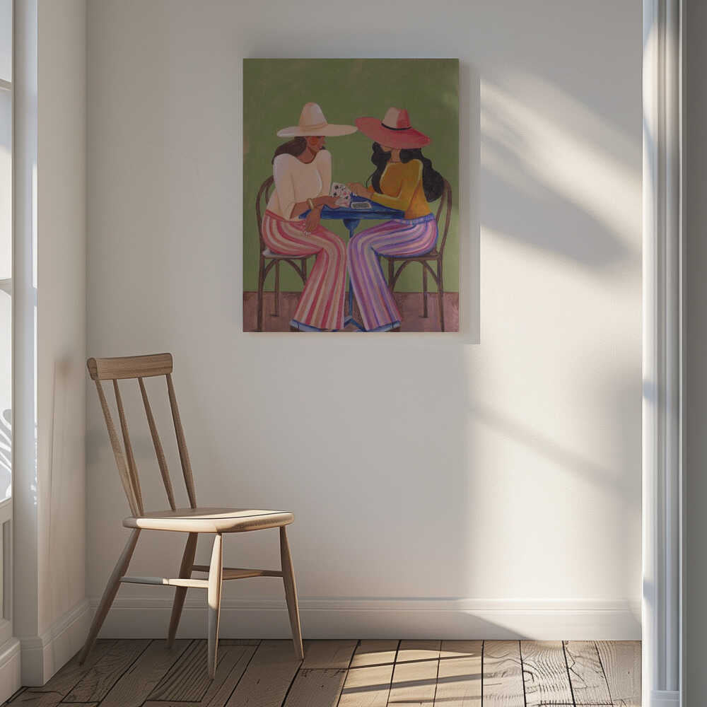 Tablou canvas „Cowgirls playing cards” creat de Caroline Bonne Müller, imprimat pe pânză de calitate, gata de agățat. Disponibil în mai multe dimensiuni. Perfect pentru orice spațiu.