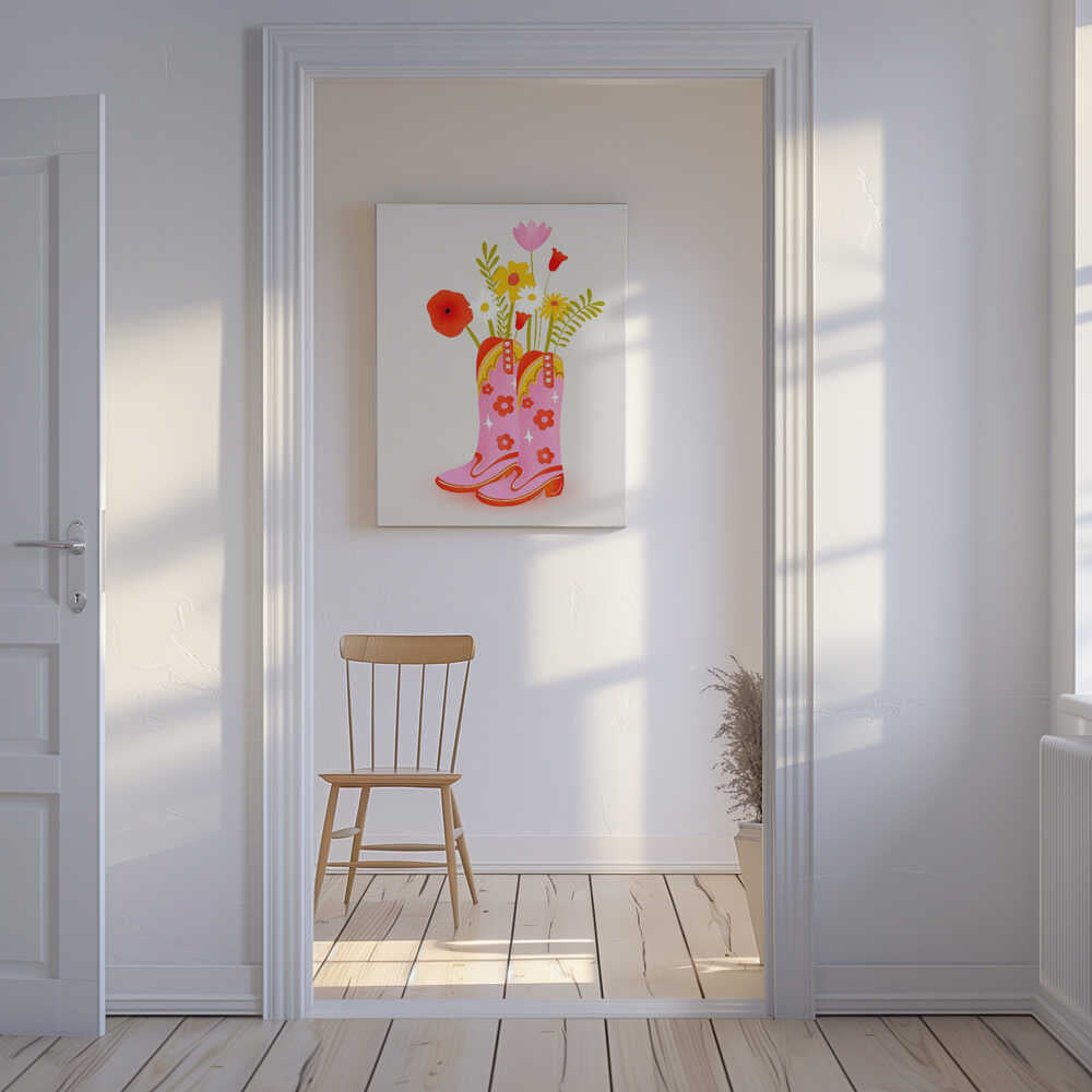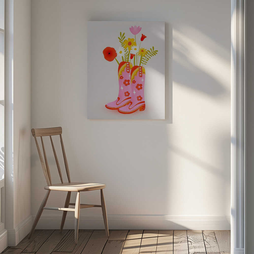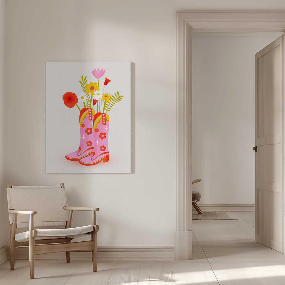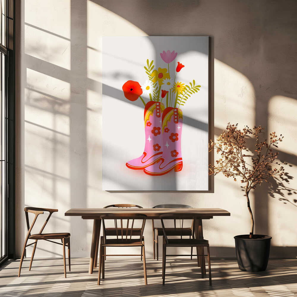 Tablou canvas „Cowgirl Boots” creat de Baroo Bloom, imprimat pe pânză de calitate, gata de agățat. Disponibil în mai multe dimensiuni. Perfect pentru orice spațiu.