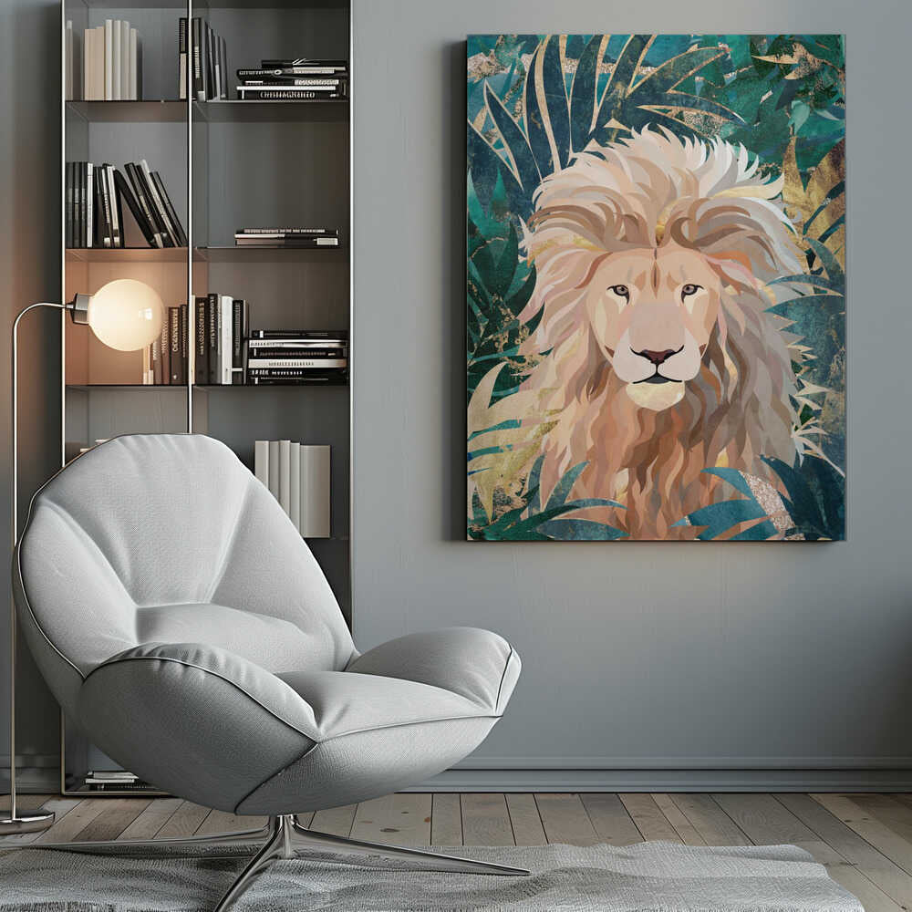 Tablou canvas „Lion Jungle 2” creat de Sarah Manovski, imprimat pe pânză de calitate, gata de agățat. Disponibil în mai multe dimensiuni. Perfect pentru orice spațiu.