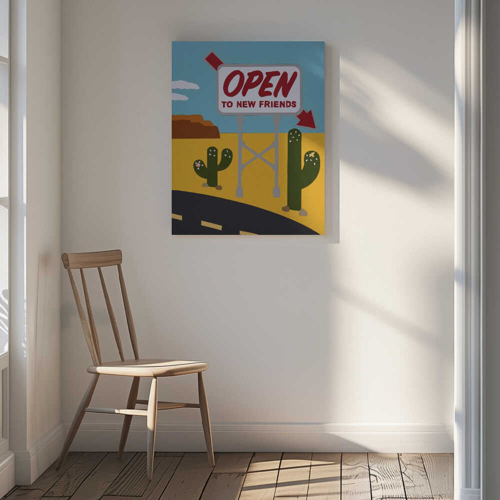 Tablou canvas „Open To New Friends” creat de Rankin Willard, imprimat pe pânză de calitate, gata de agățat. Disponibil în mai multe dimensiuni. Perfect pentru orice spațiu.