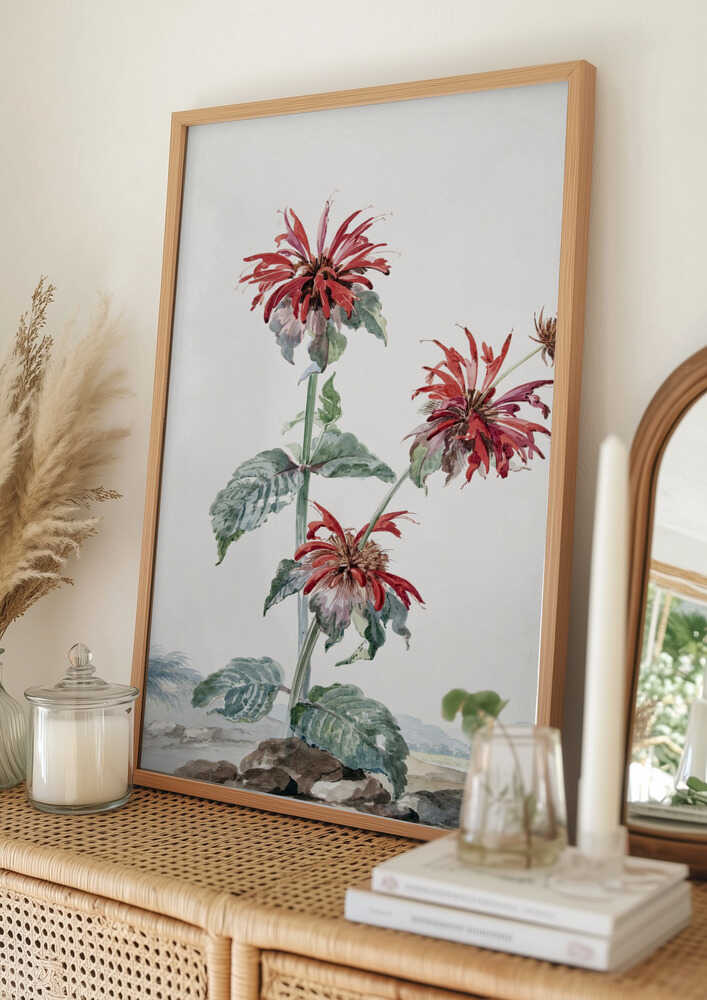 Tabloul înramat „A Red Bergamot In a Landscape”, creat de Aert Schouman, este disponibil în mai multe dimensiuni, cu ramă neagră, albă sau din lemn natur. Se potrivește perfect în orice încăpere.