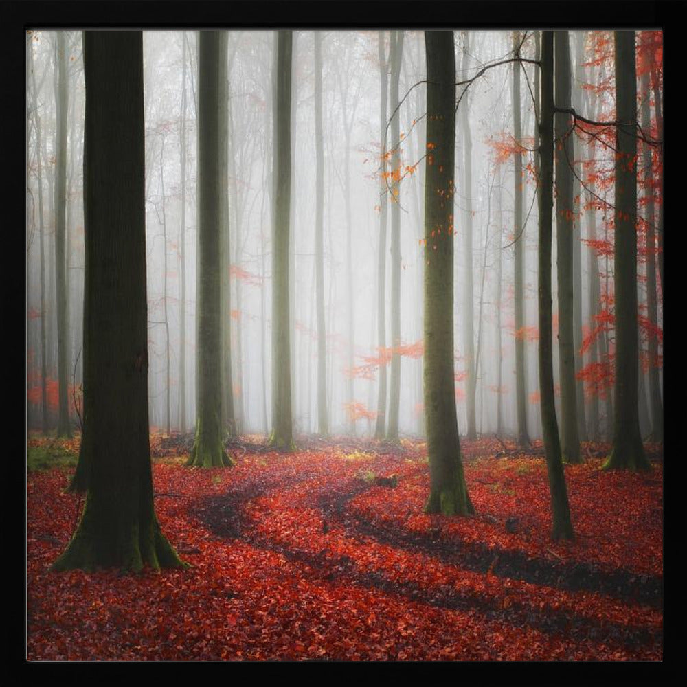 Tabloul înramat „Autumnal Tracks”, creat de Carsten Meyerdierks, este disponibil în mai multe dimensiuni, cu ramă neagră, albă sau din lemn natur. Se potrivește perfect în orice încăpere.