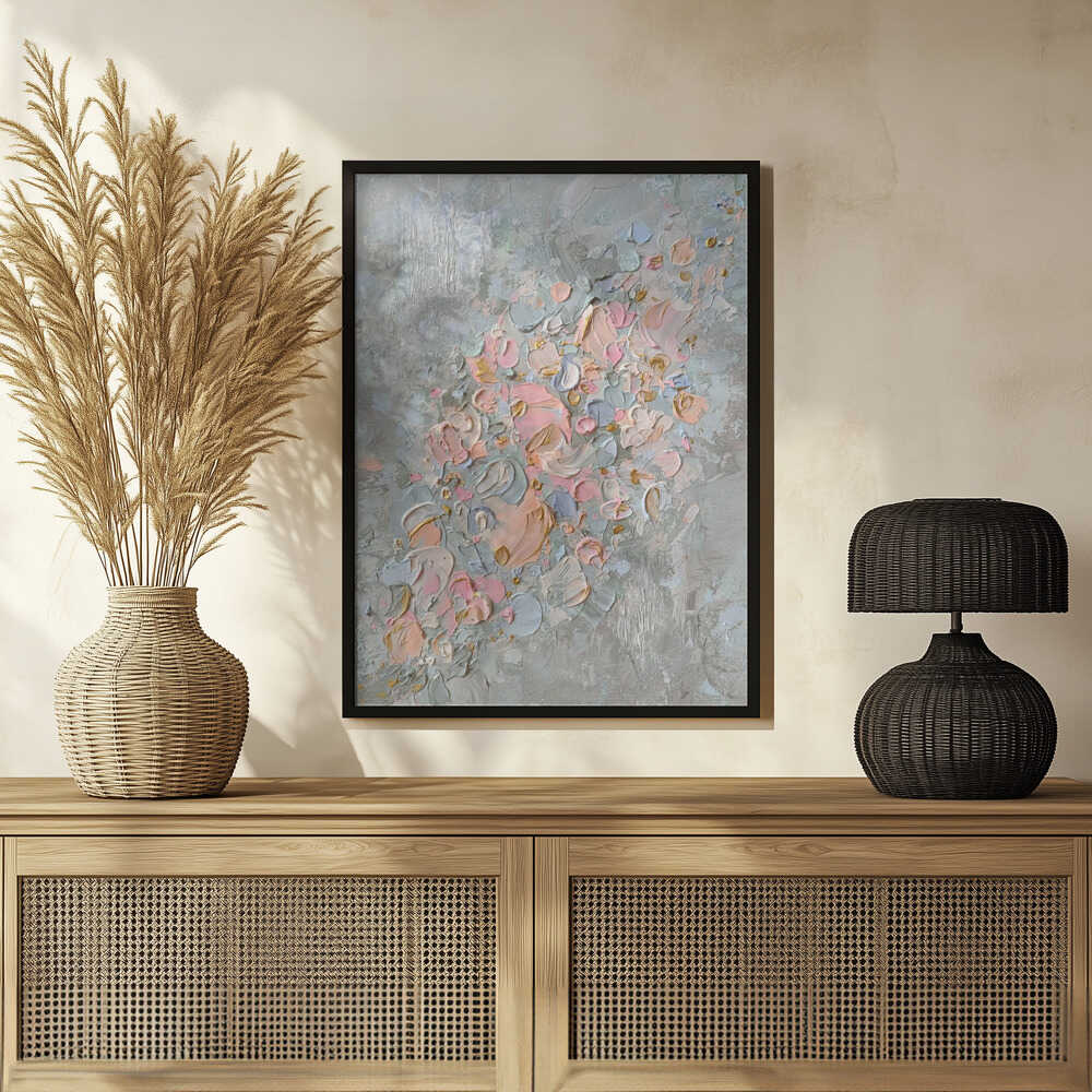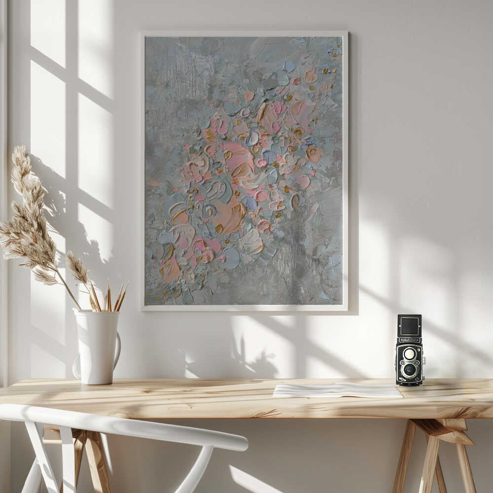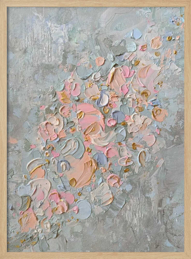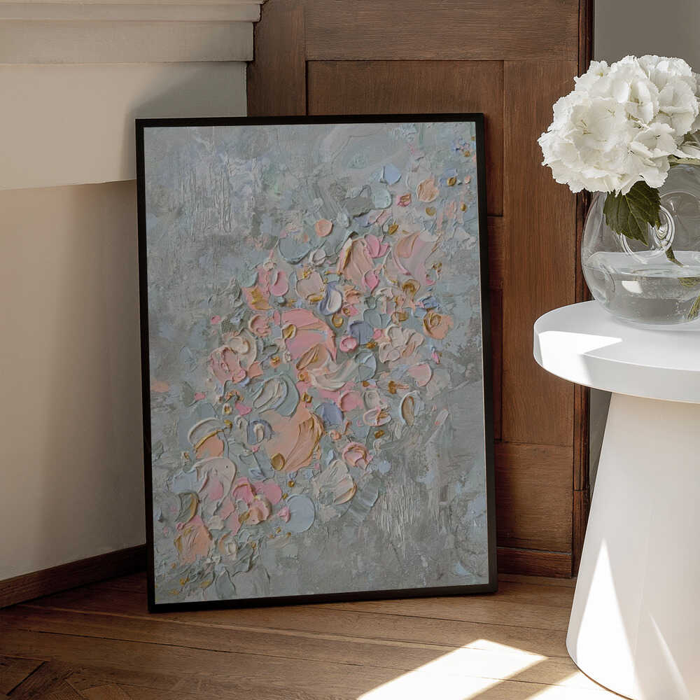 Tabloul înramat „Bloom”, creat de Anastasiya Devochkina, este disponibil în mai multe dimensiuni, cu ramă neagră, albă sau din lemn natur. Se potrivește perfect în orice încăpere.